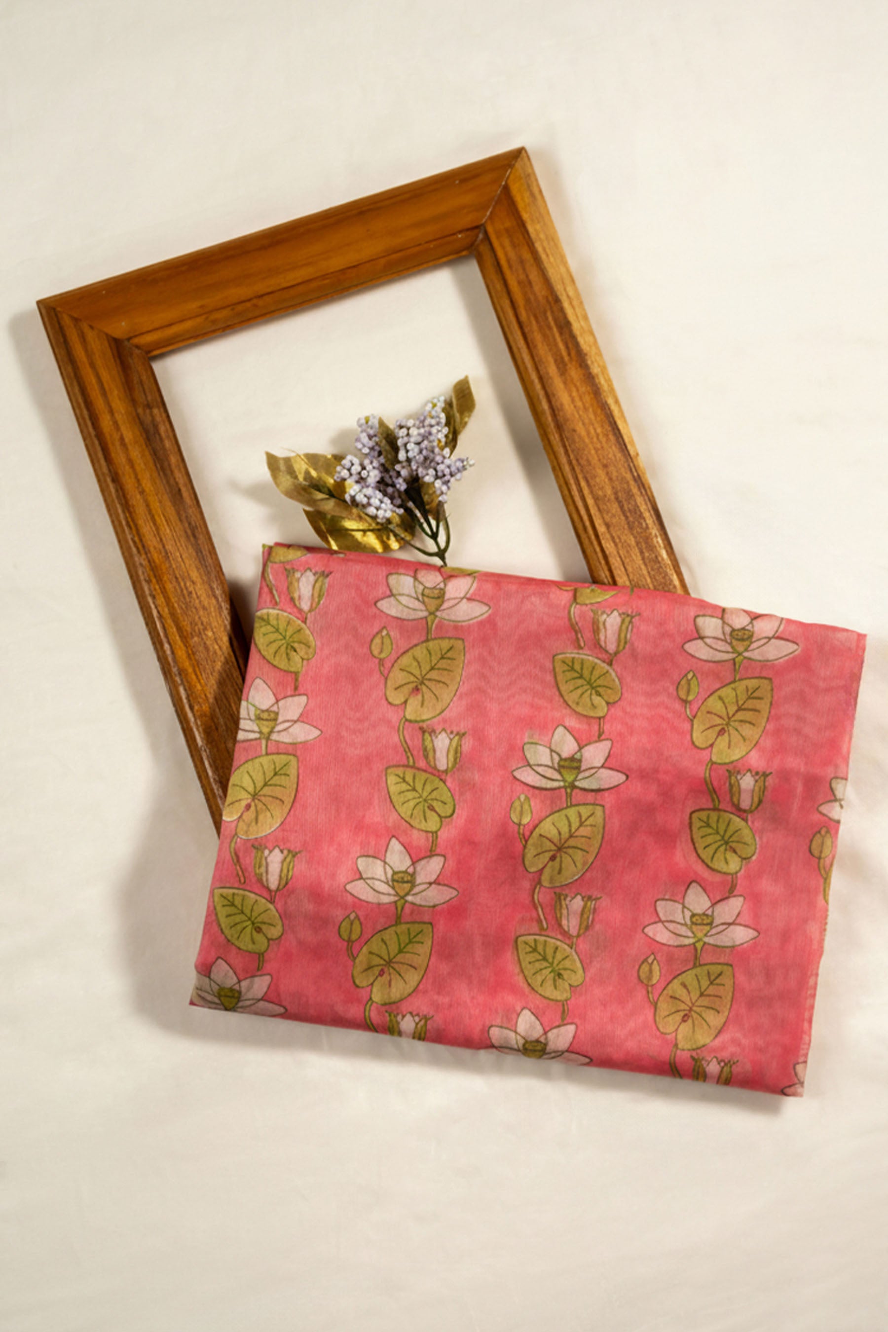 Hand Block Print Chanderi Silk Cotton Dupatta Pink Lotus Pattern