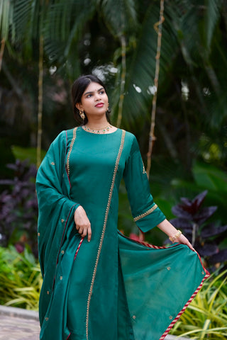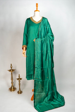 Emerald Green Tanjore Modal Silk Suit with Guttapusalu Embroidery and Brocade Borders