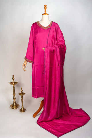 Purple Tanjore Modal Silk Kurti Pant Dupatta Set with Hand Embroidered Zardozi and Stone Work