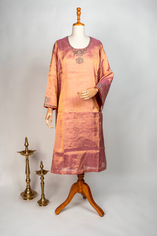 Dual Tone Shaded Pink Tissue Kurti Pant with Shantoon Lining and Hand Embroidered Zardozi