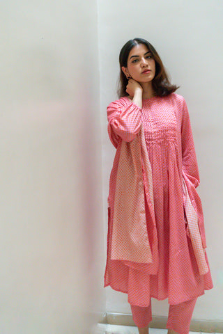 Green Cotton & Gold Lurex Coord Set – Understated Glamour in Every Detail