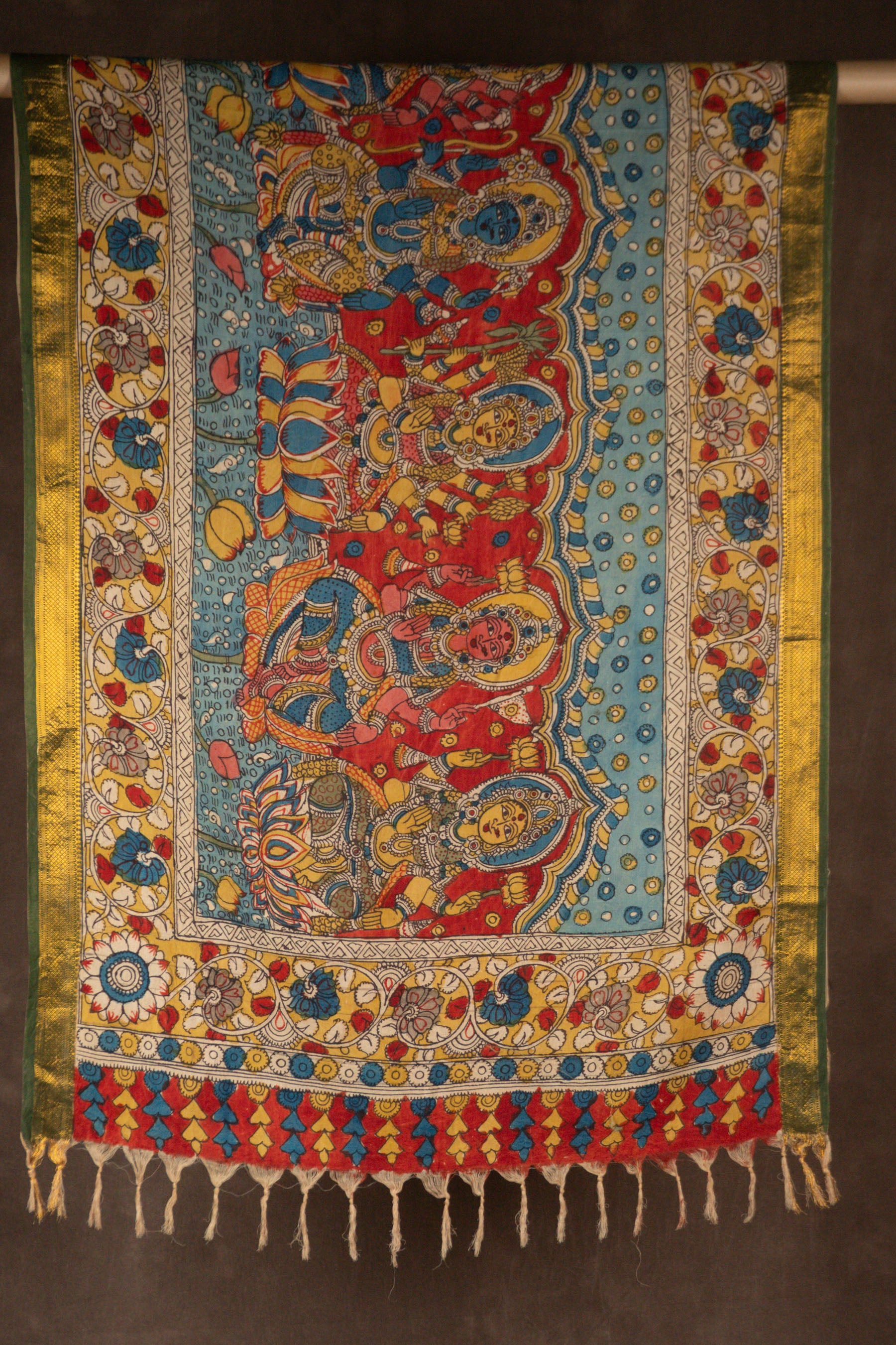 Hand Kalamkari Chennuri Silk Dupatta in Vibrant Yellow Floral Print