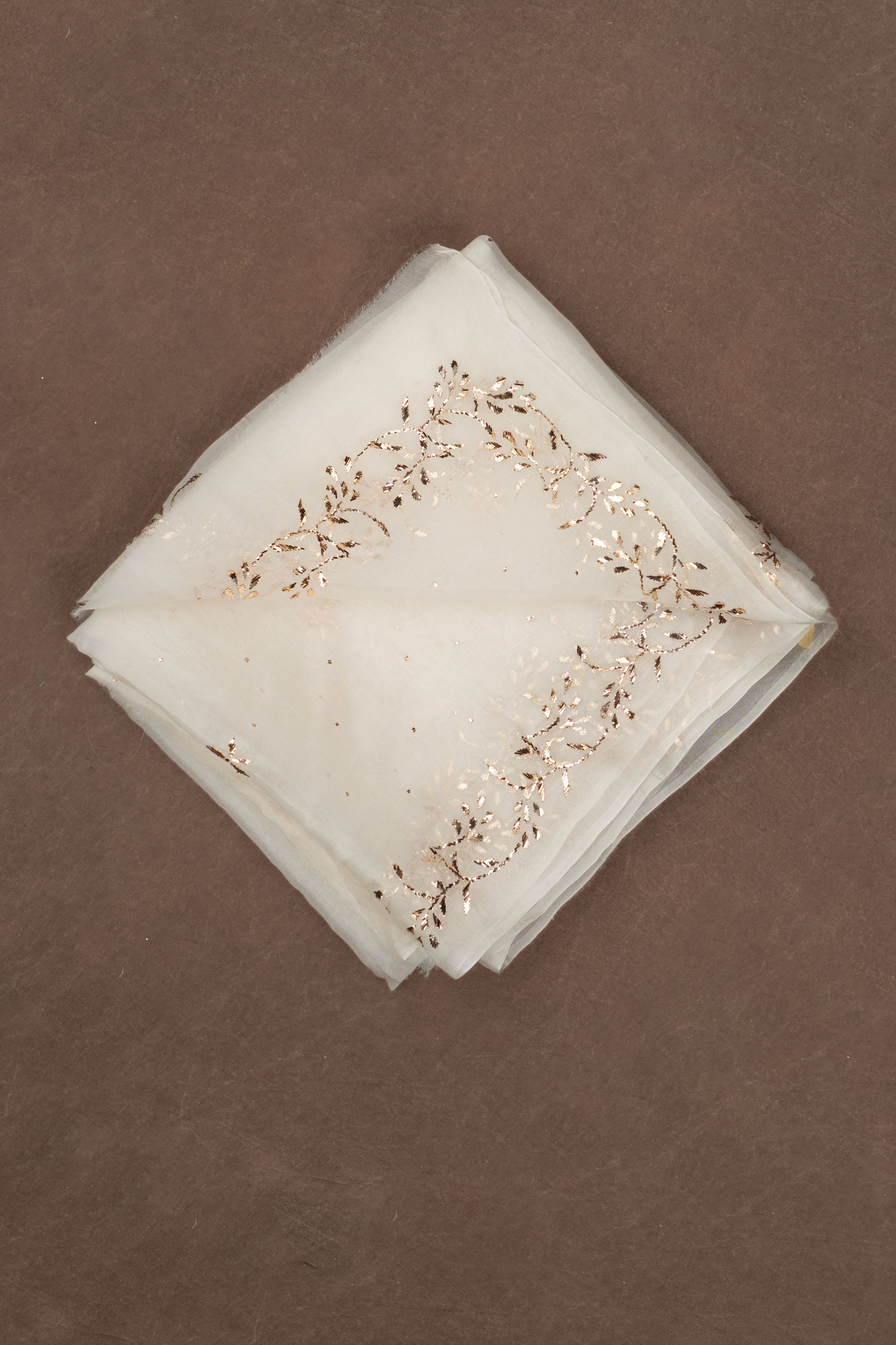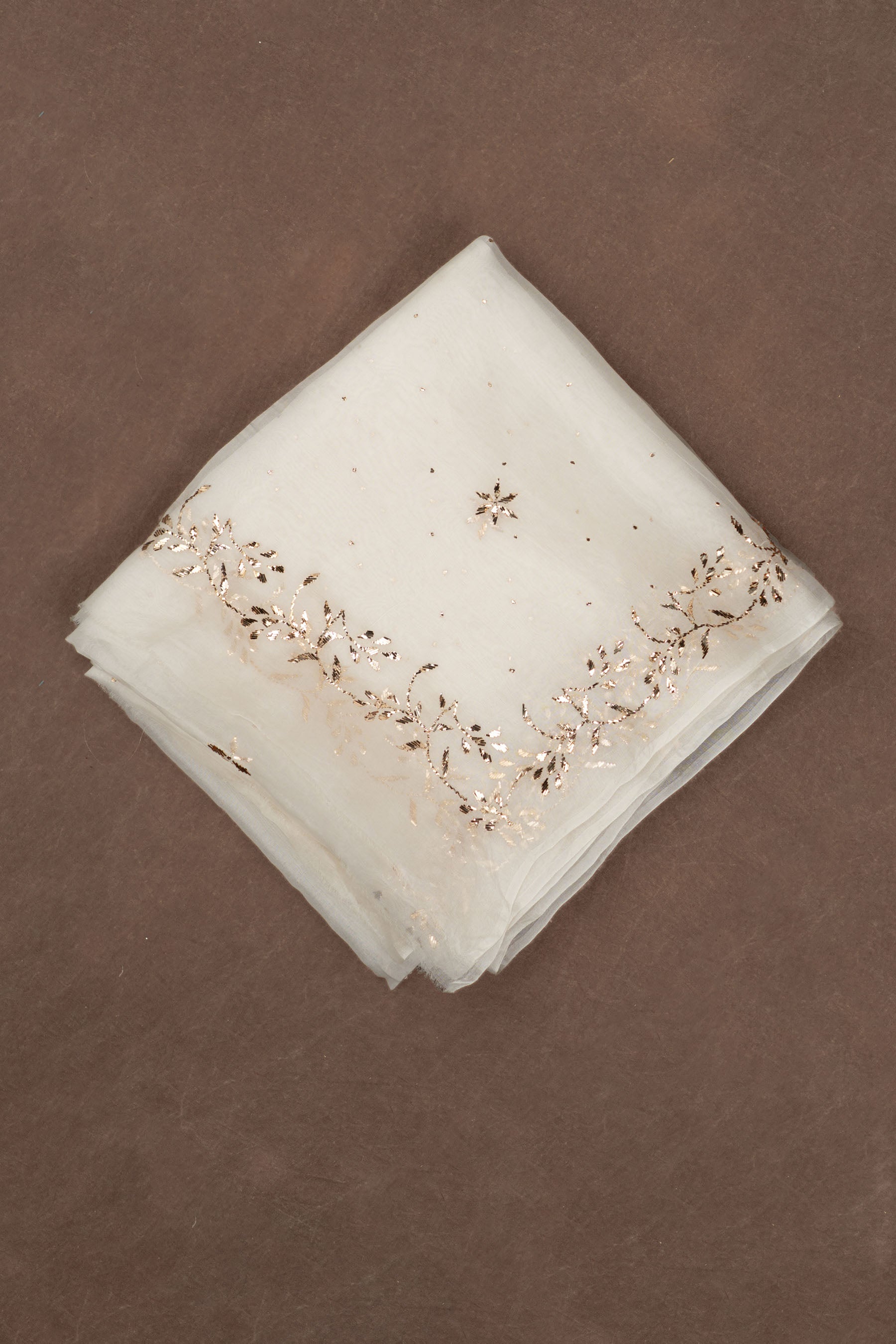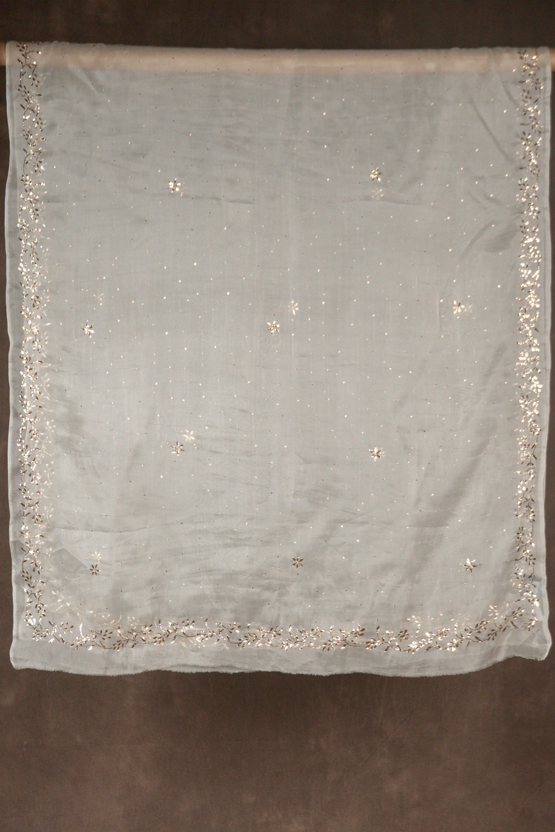 Off White Pure Silk Organza Dupatta Kaamdani Mukesh Work