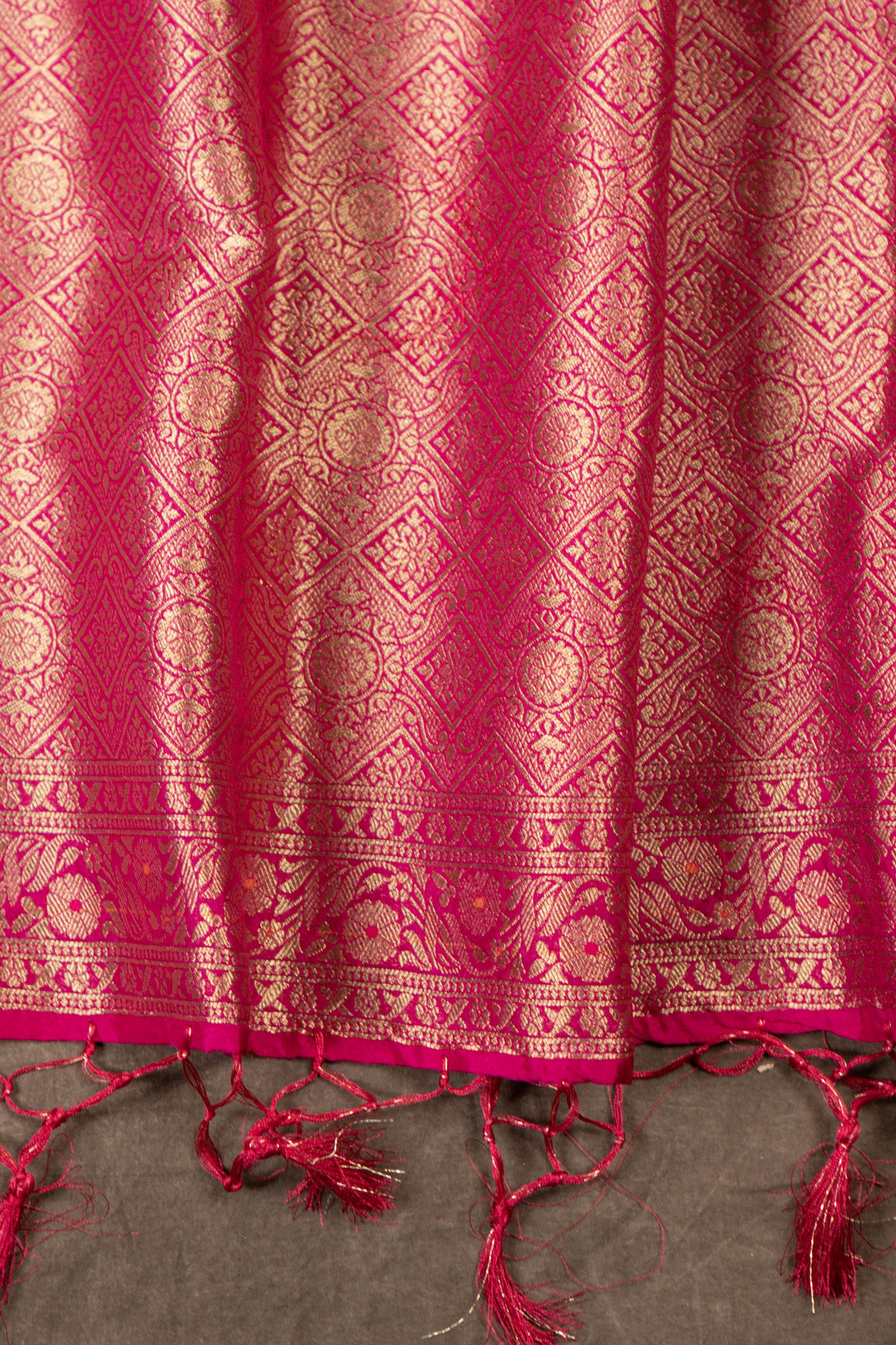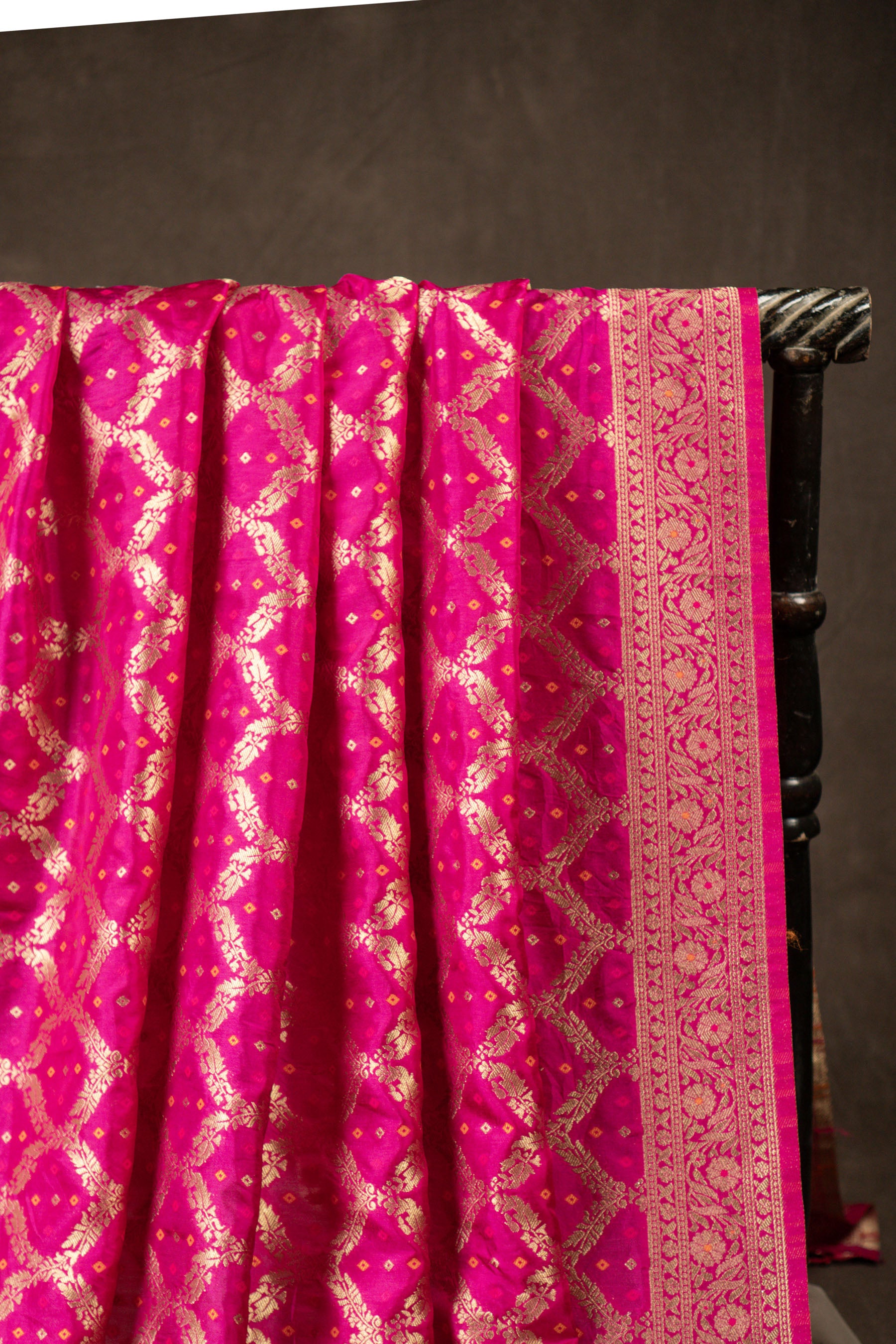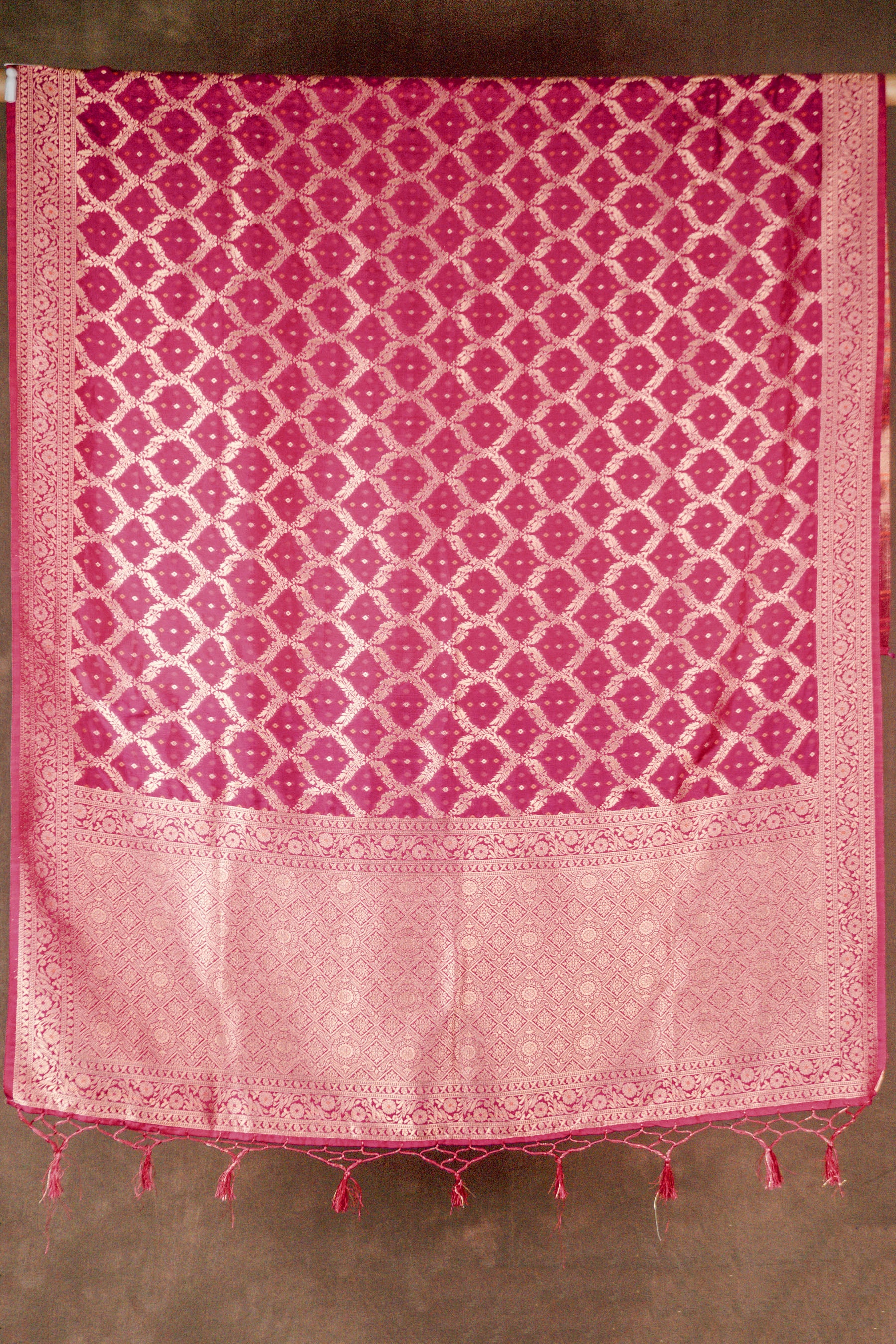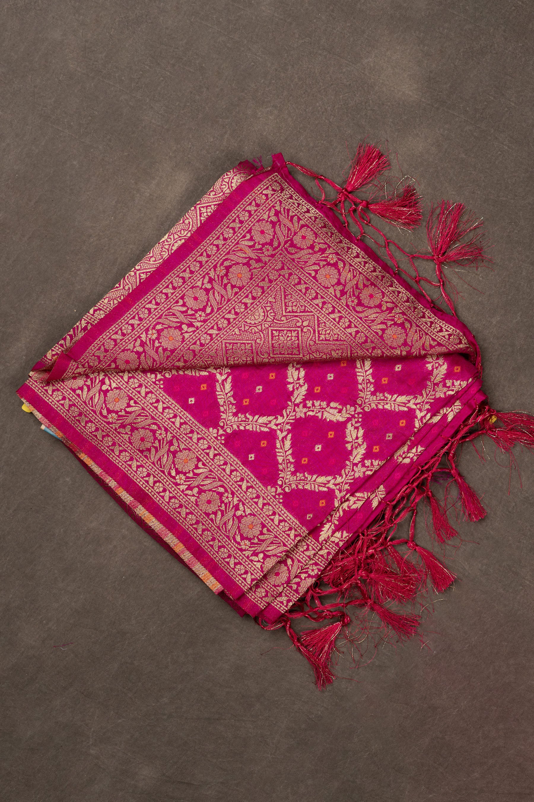 Rani Pink Banarasi Art Silk Jaal Dupatta with Bandhani Weave Effect