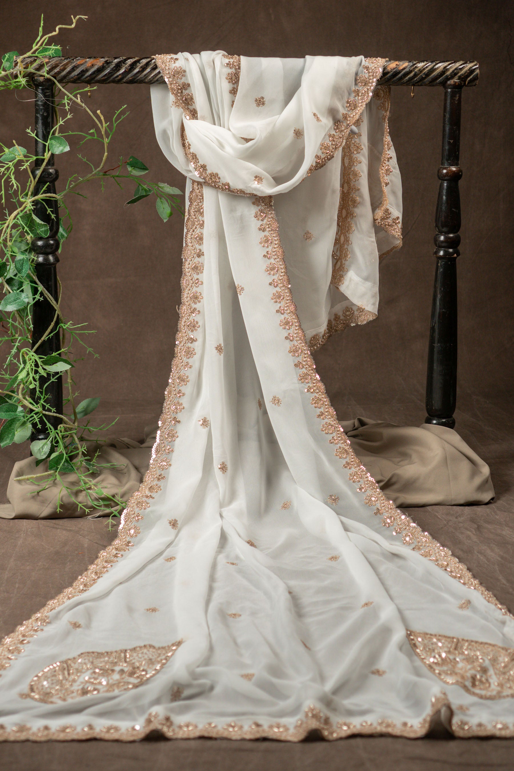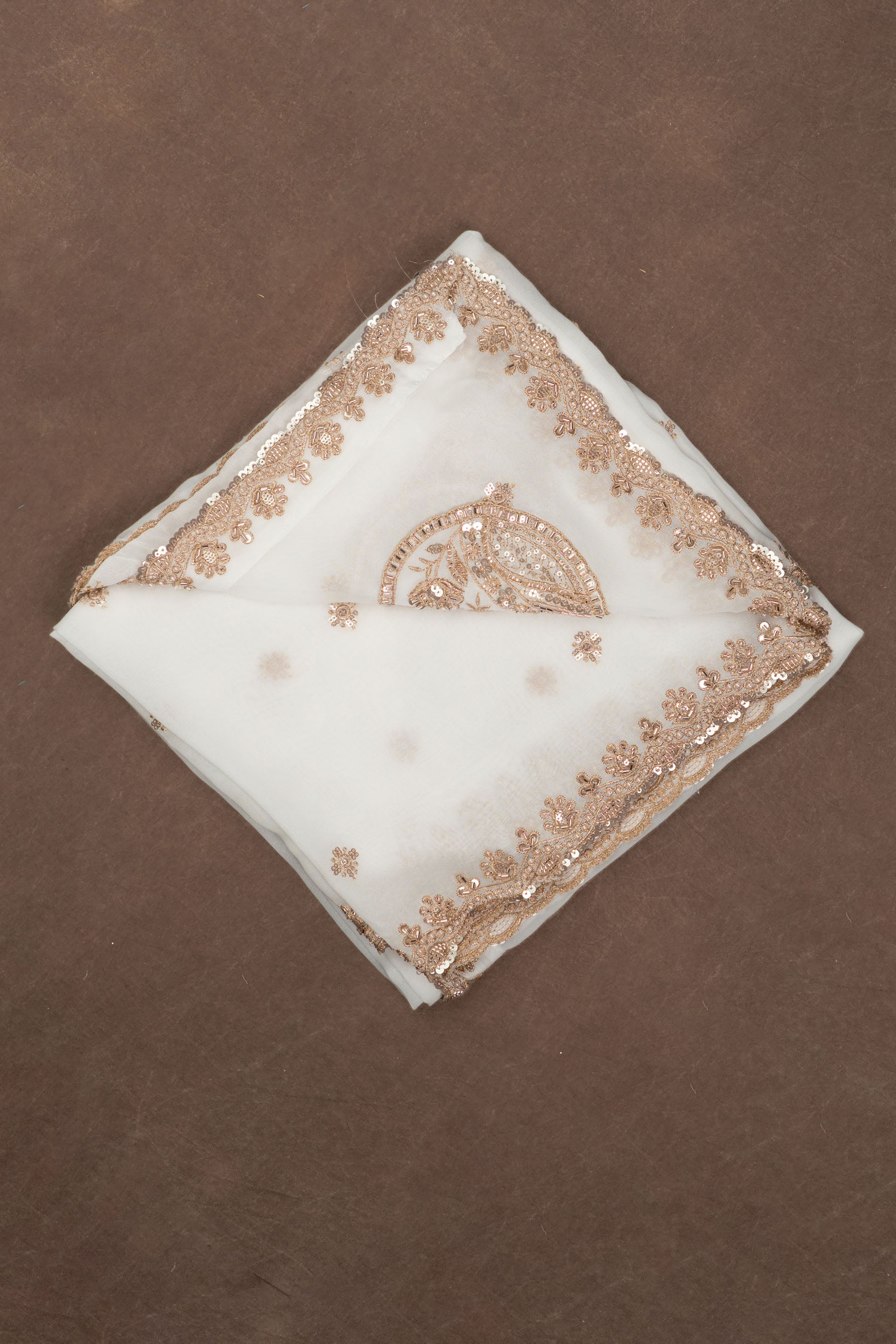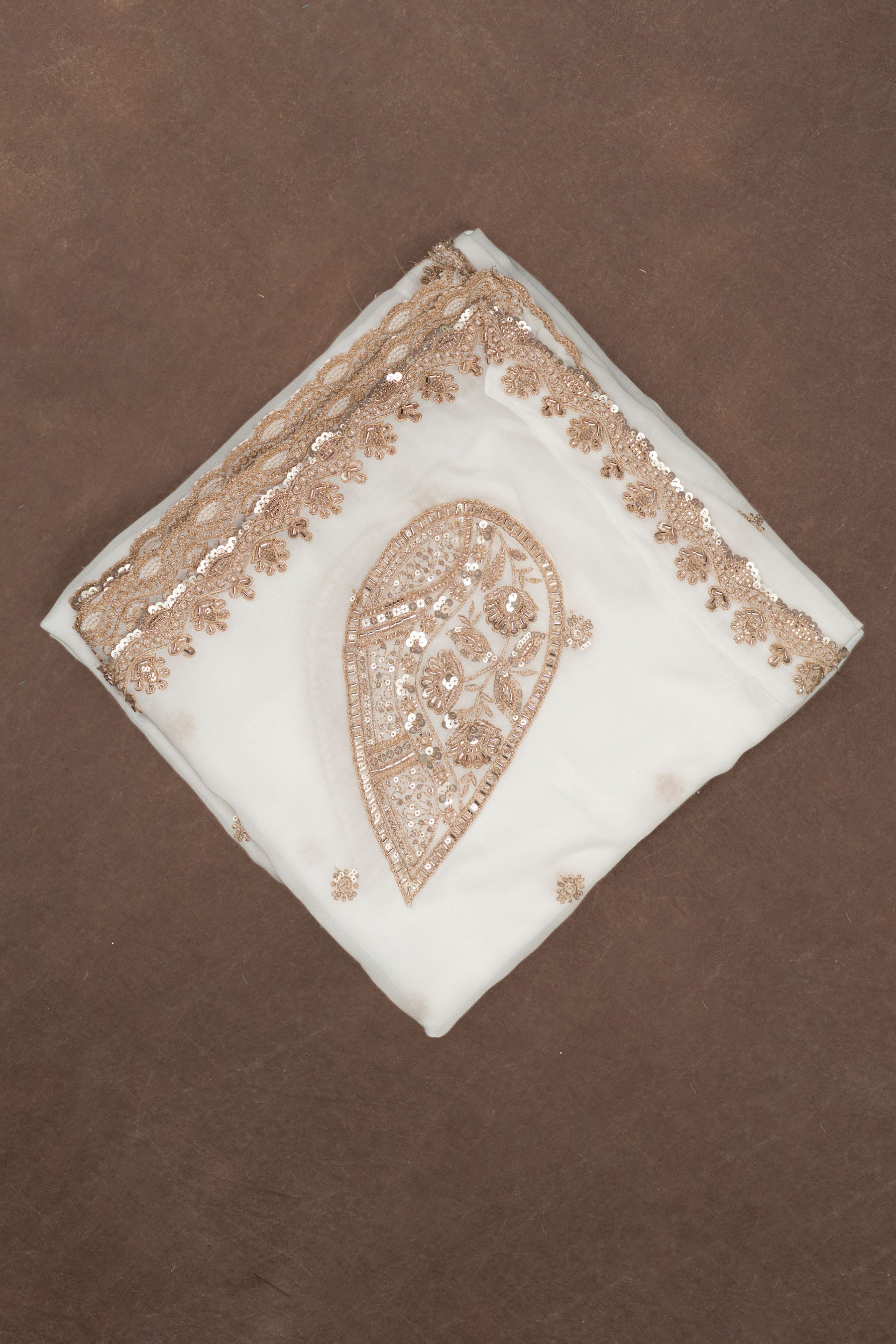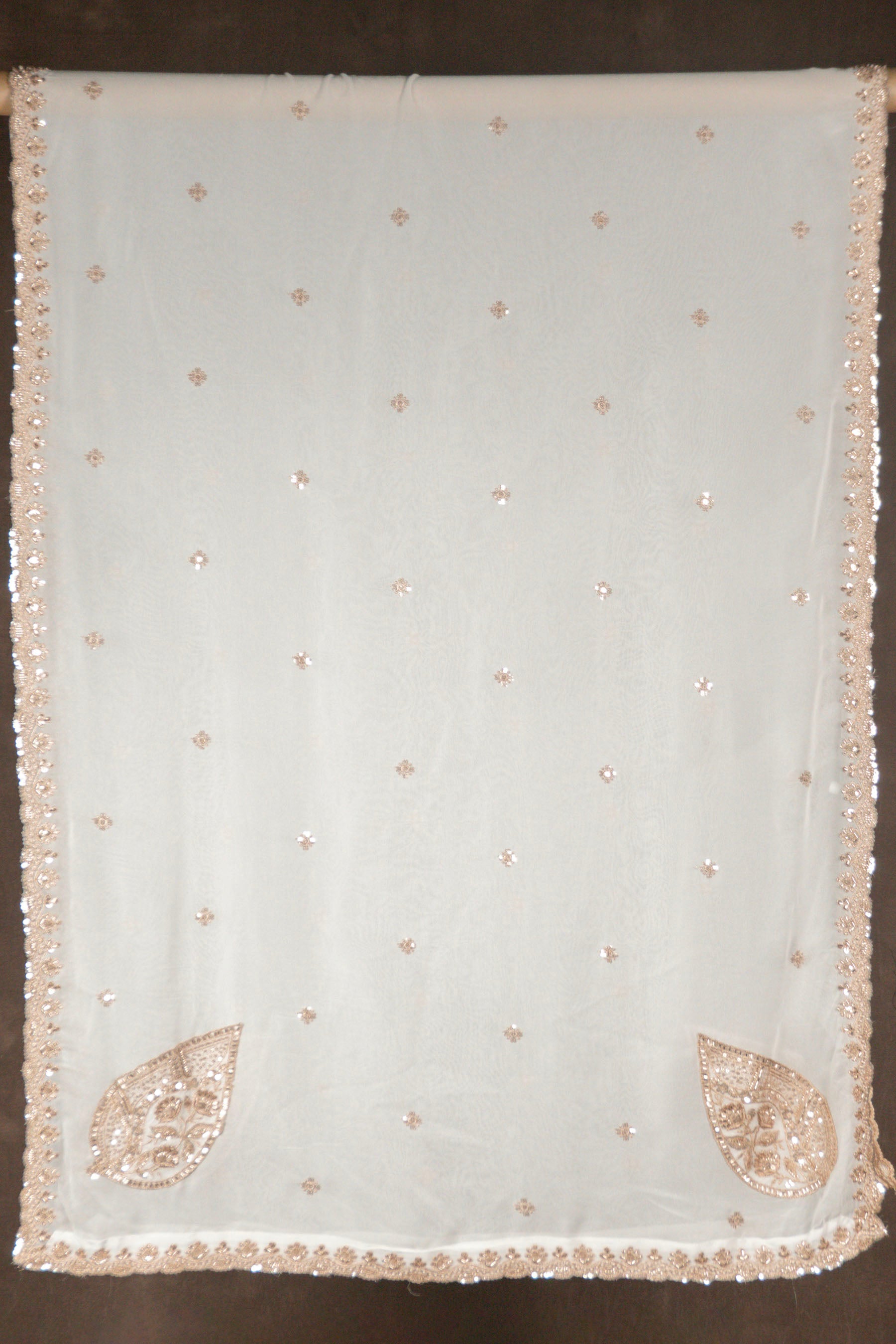 White Pure Georgette Dupatta Hand Embroidery Zardozi Work