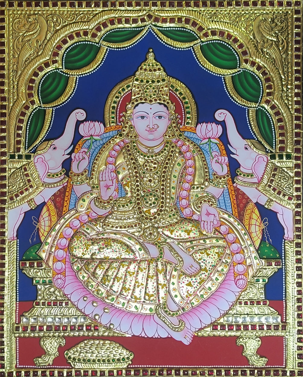 Divine Abundance: Gajalakshmi Tanjore Painting
