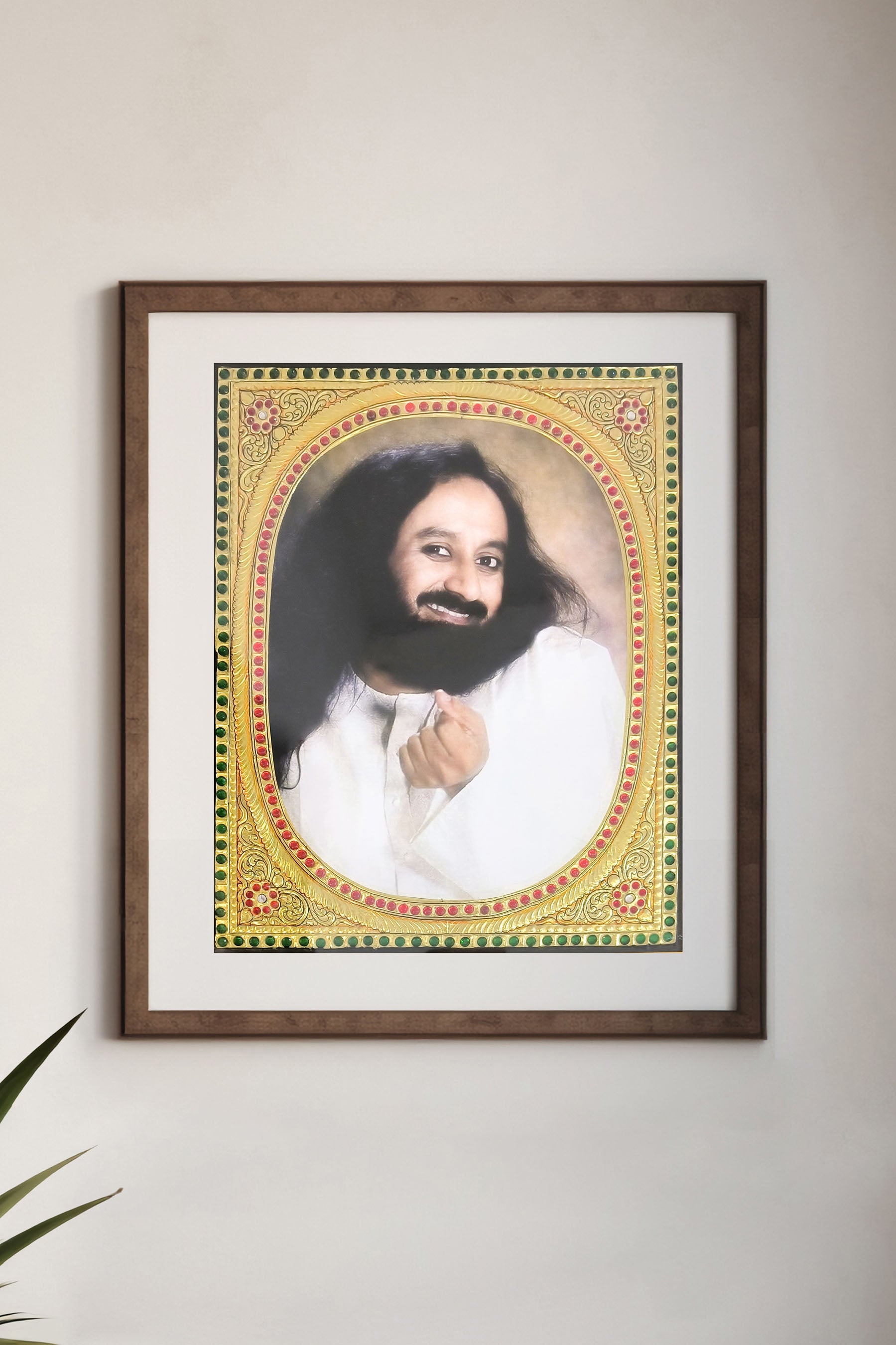 Gurudev Sri Sri Ravi Shankar Ji "Joyful Gesture" Tanjore-Style Framed Portrait