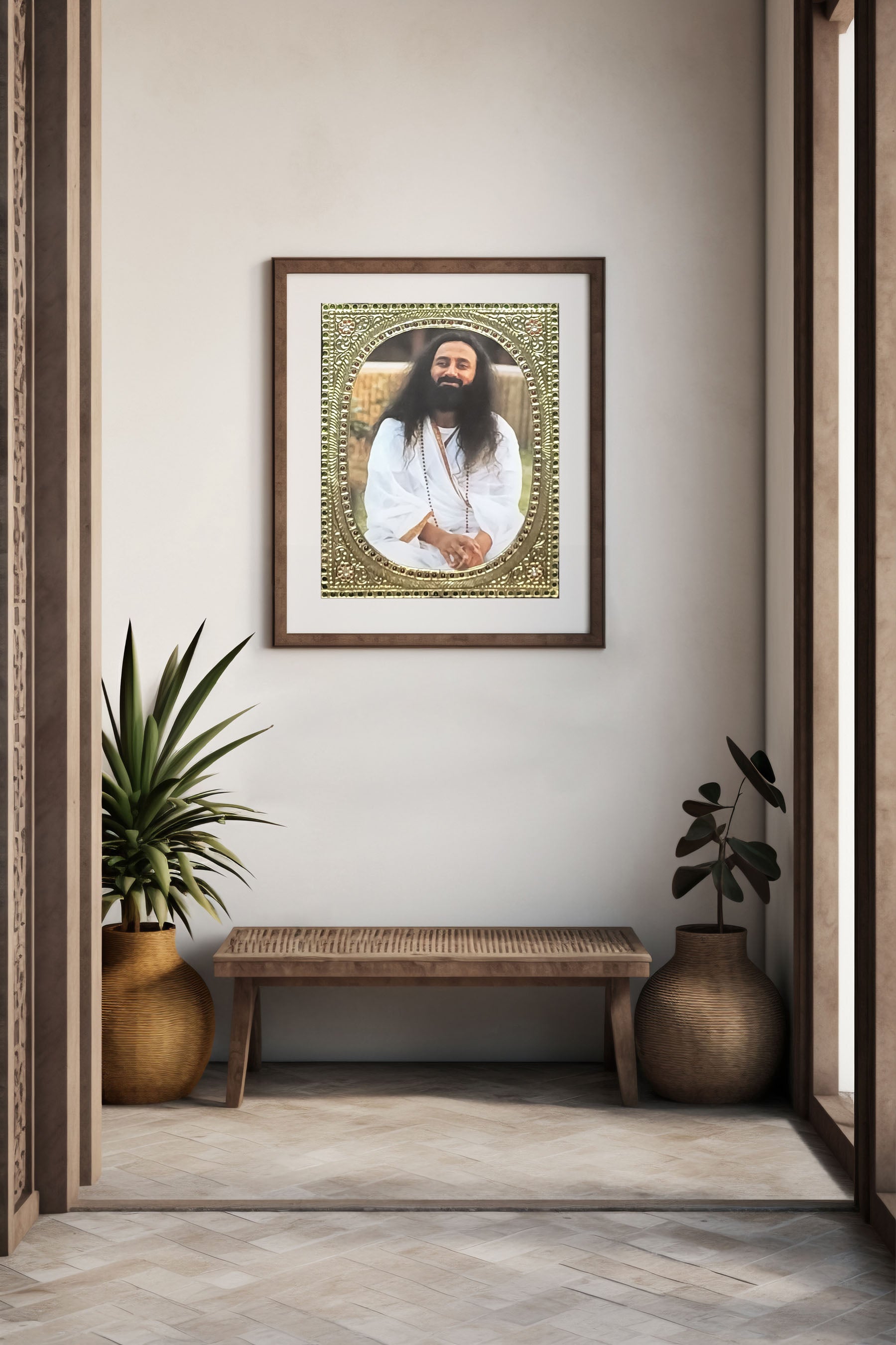 Gurudev Sri Sri Ravi Shankar Ji Portrait in Ornate Tanjore-Style Frame