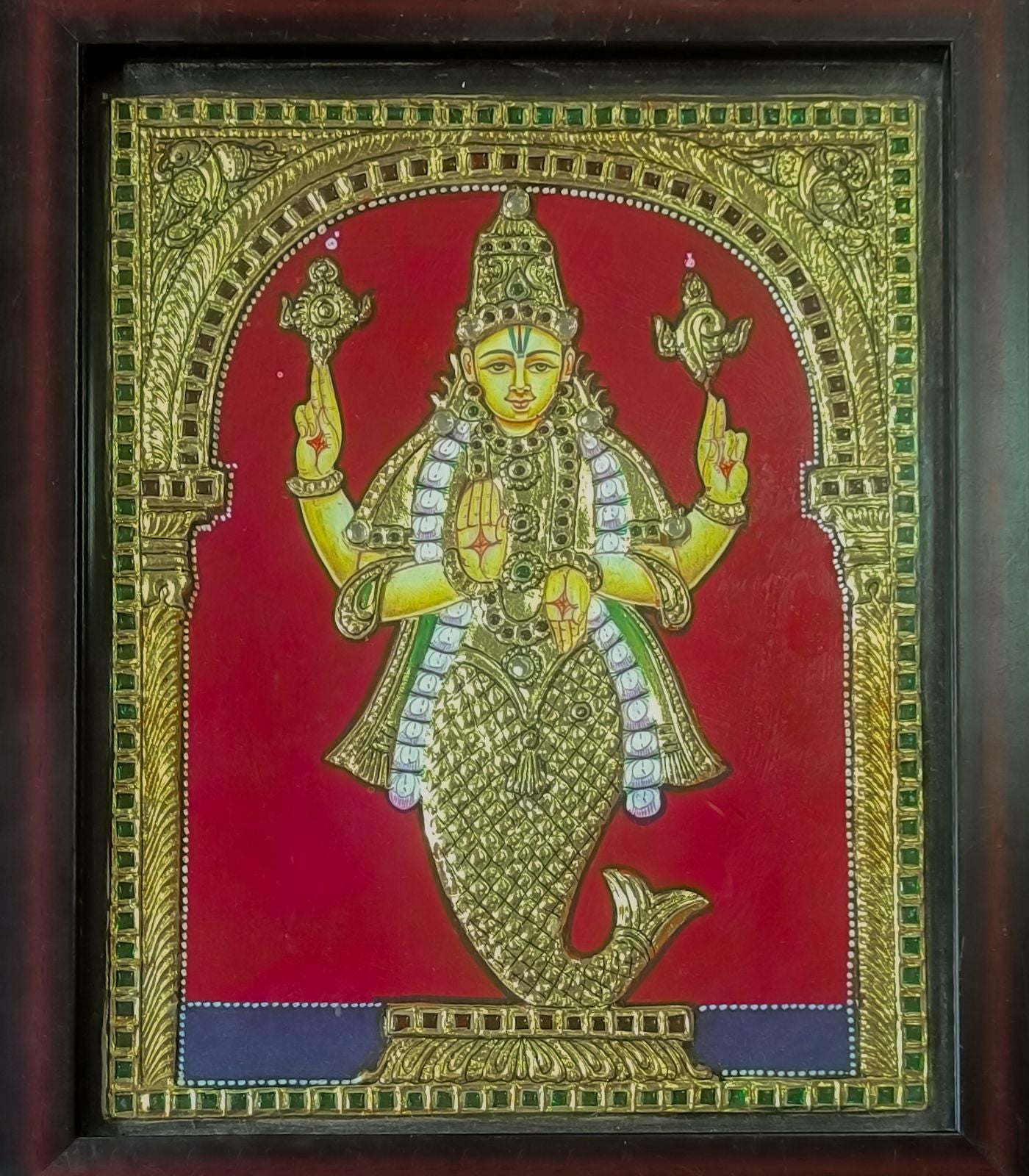 Handcrafted Matsya Avatar Tanjore Painting with 22K Gold Foil & Gesso Work Traditional South Indian Art