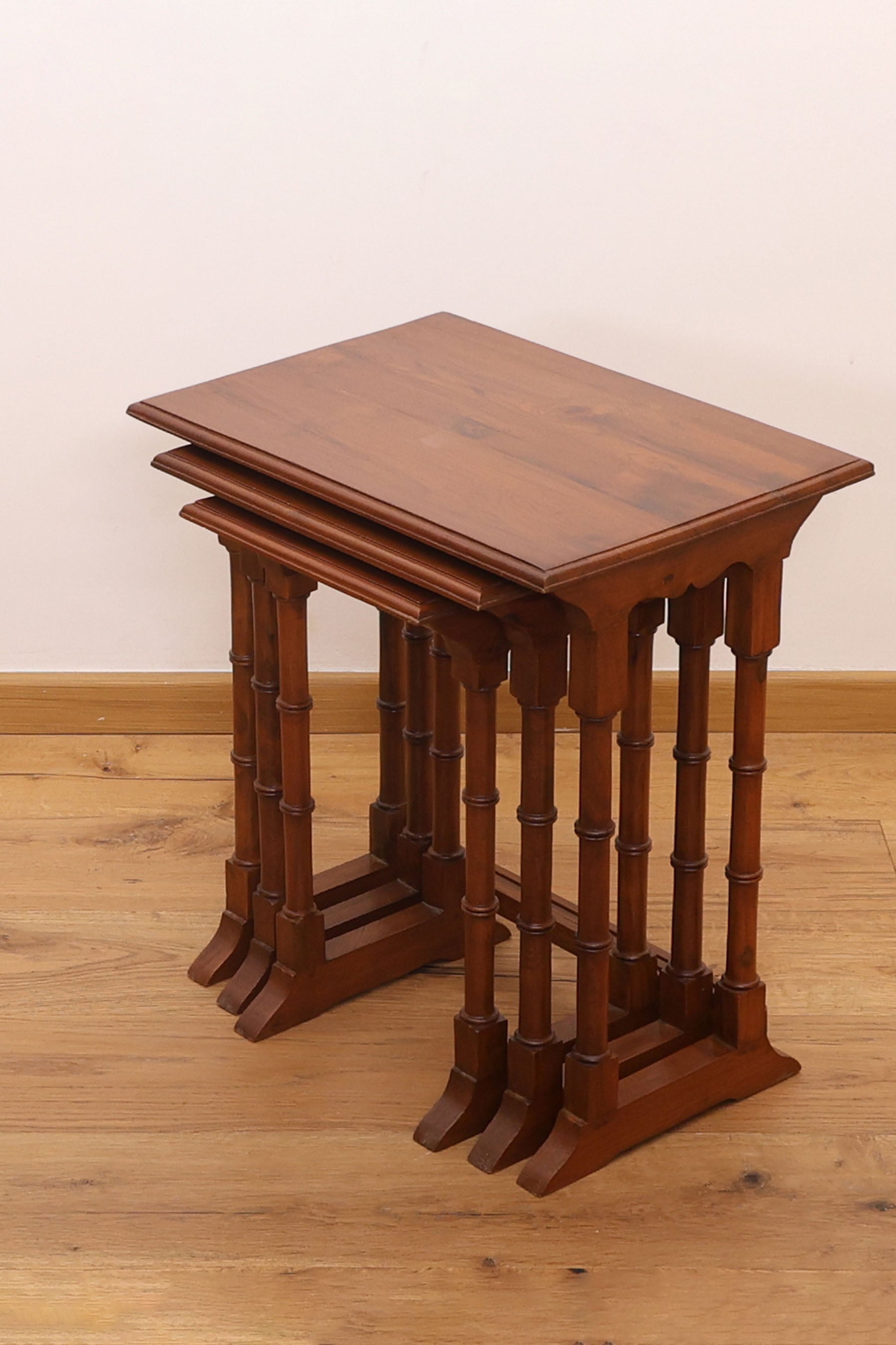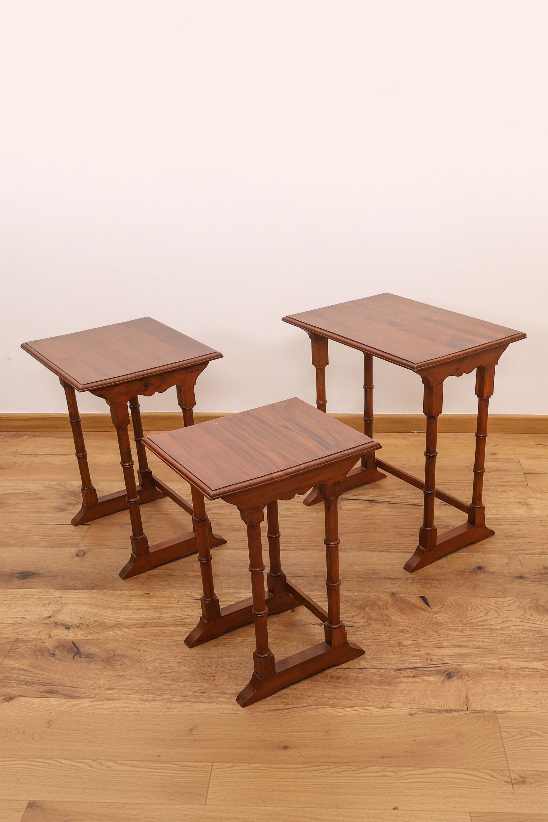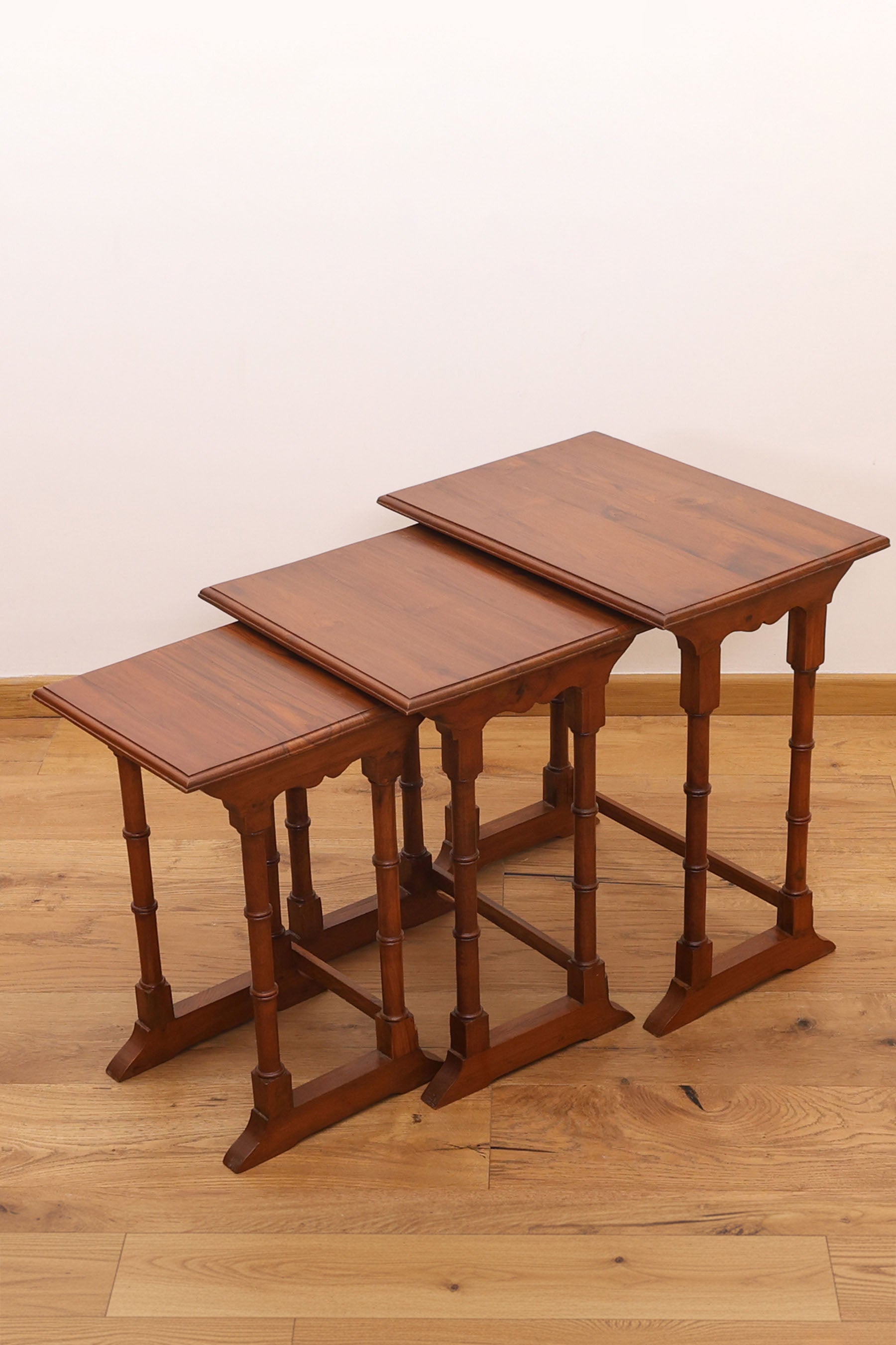 Trio Nesting Tables in Solid Teakwood with Classic Turned Legs & Space-Saving Design