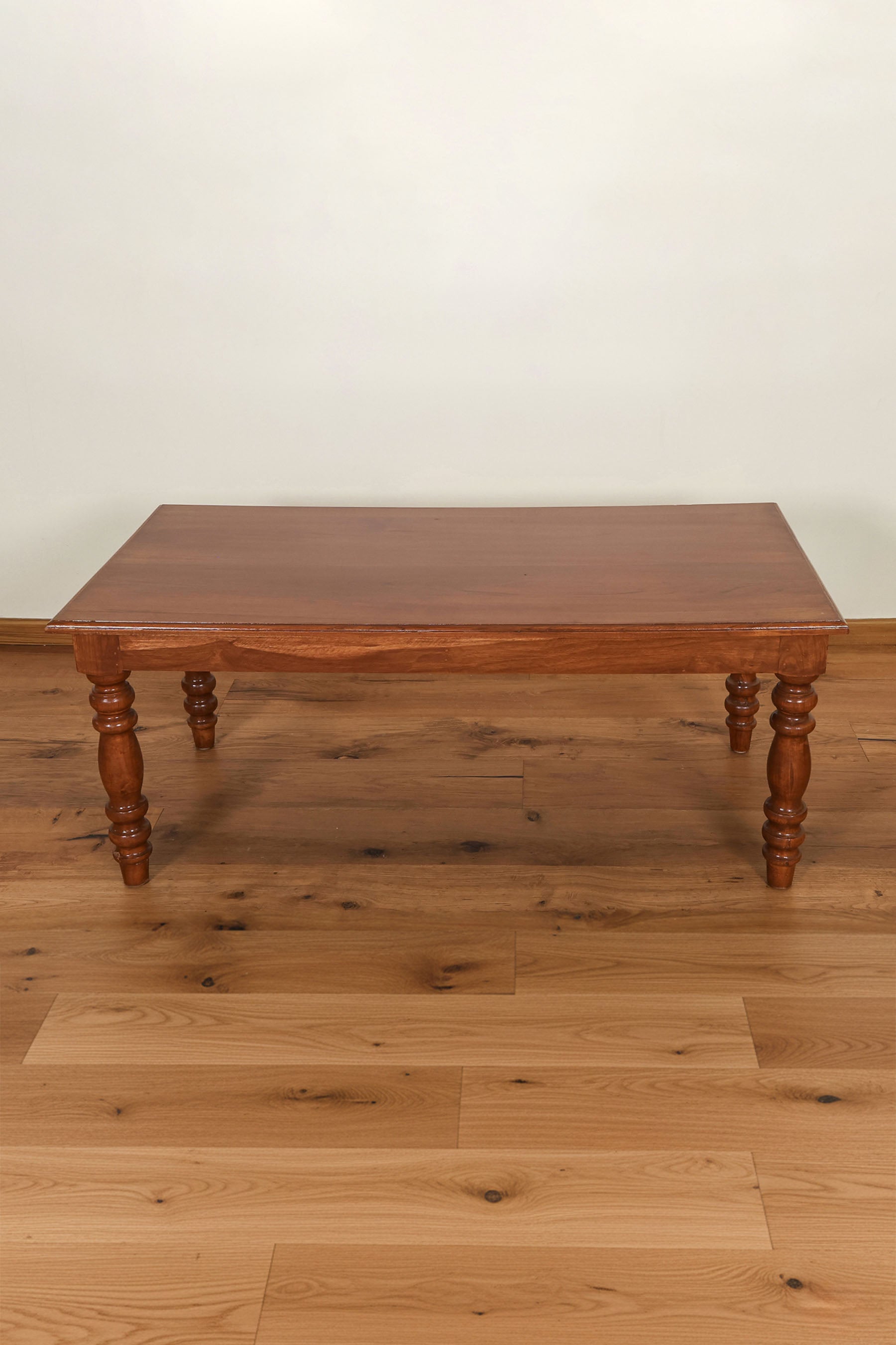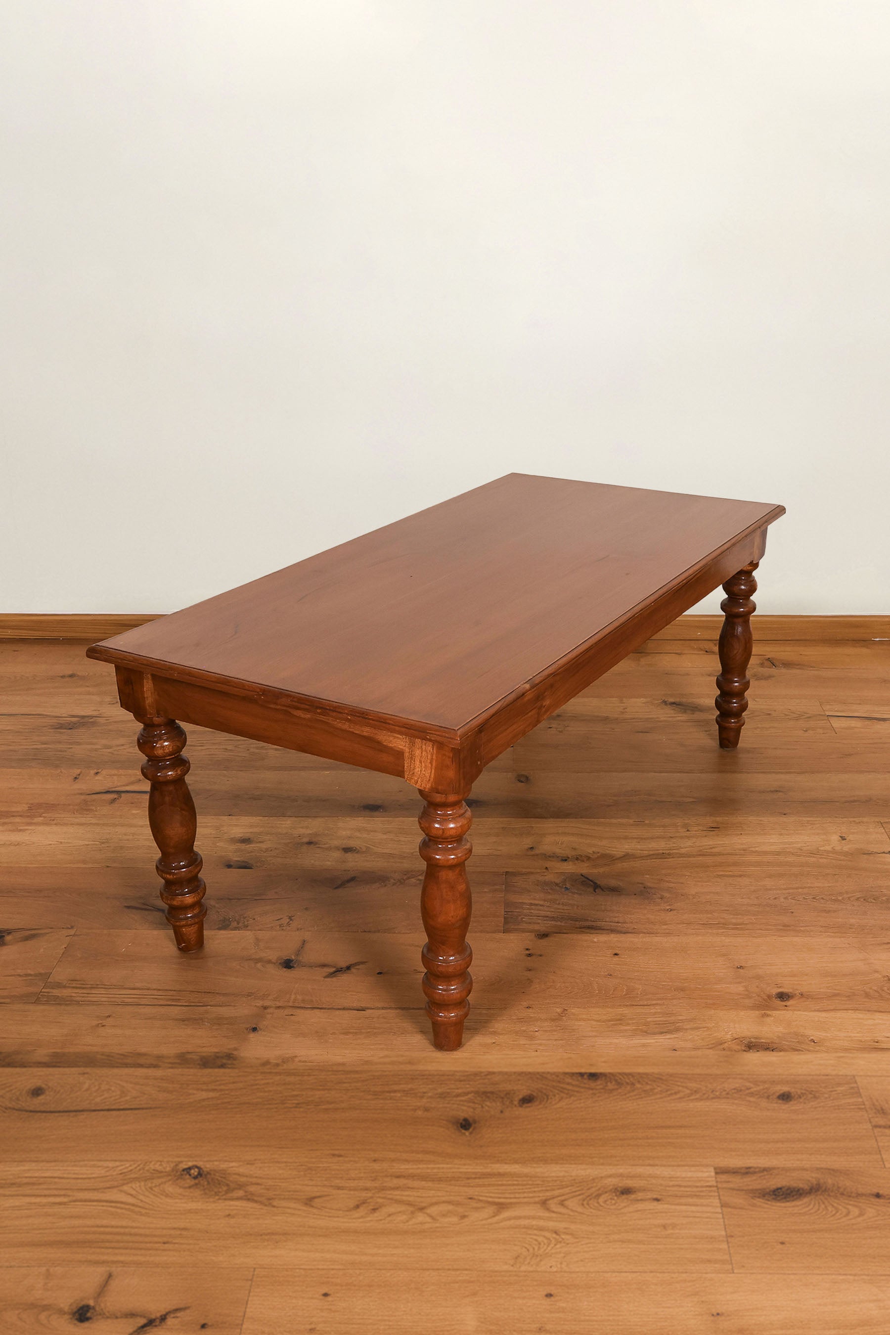 Vintage Solid Teakwood Center Table with Handcrafted Turned Legs & Rich Natural Grain Finish