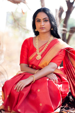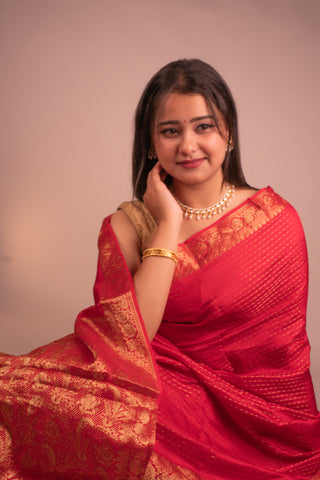 With Kumkum, our newest collection of red sarees, especially crafted for the festive and wedding season, Madhurya bows down to the Shakti in every woman.