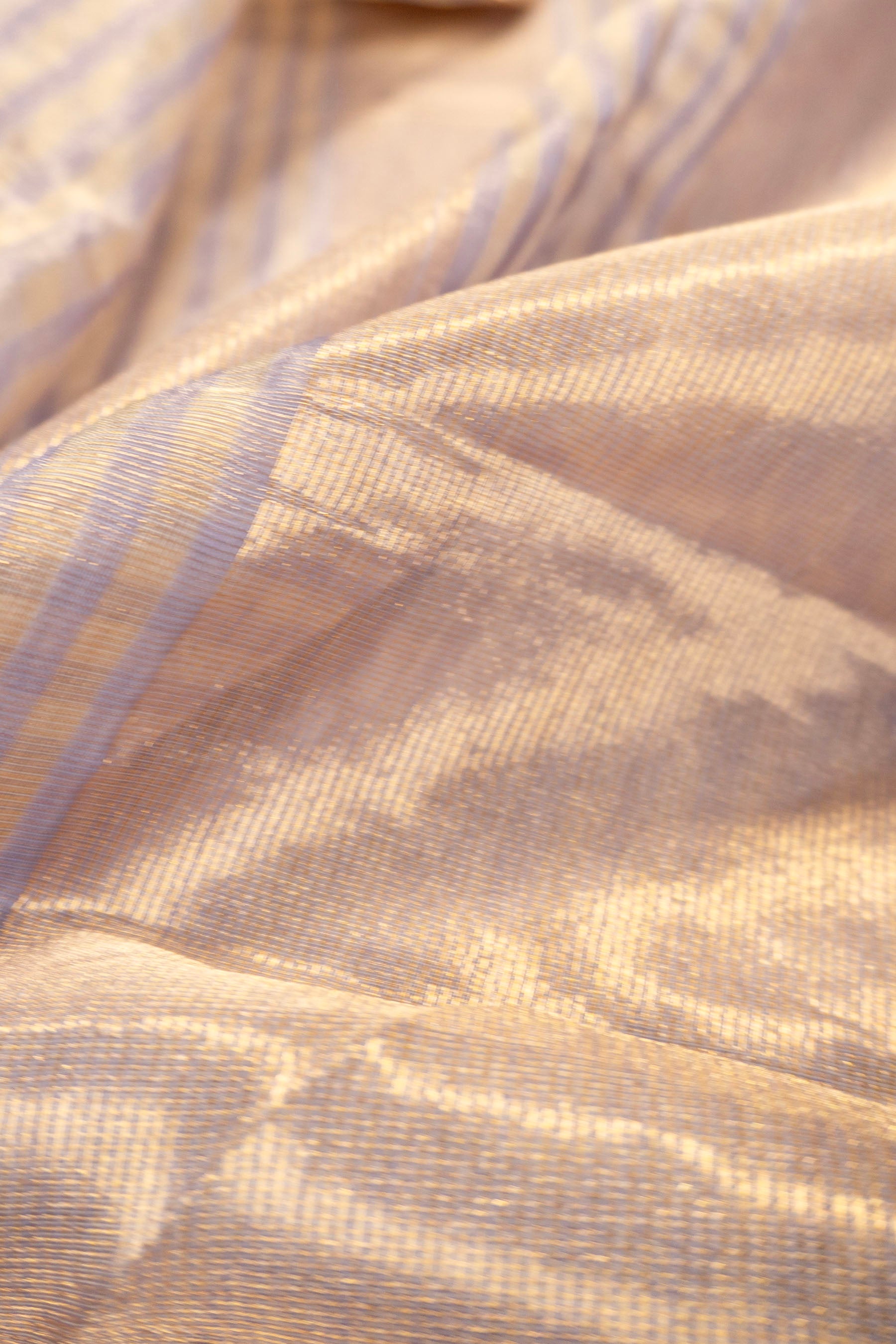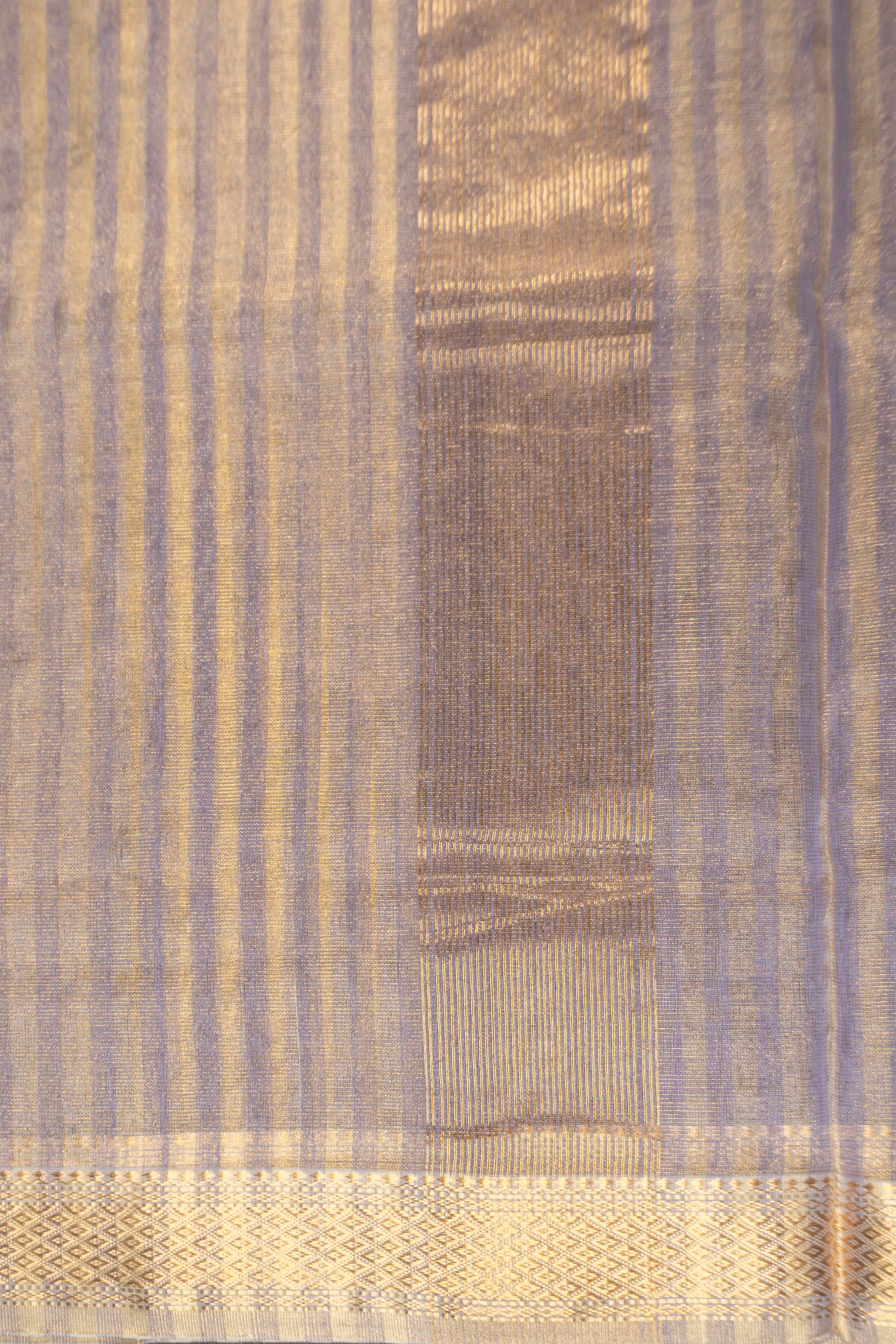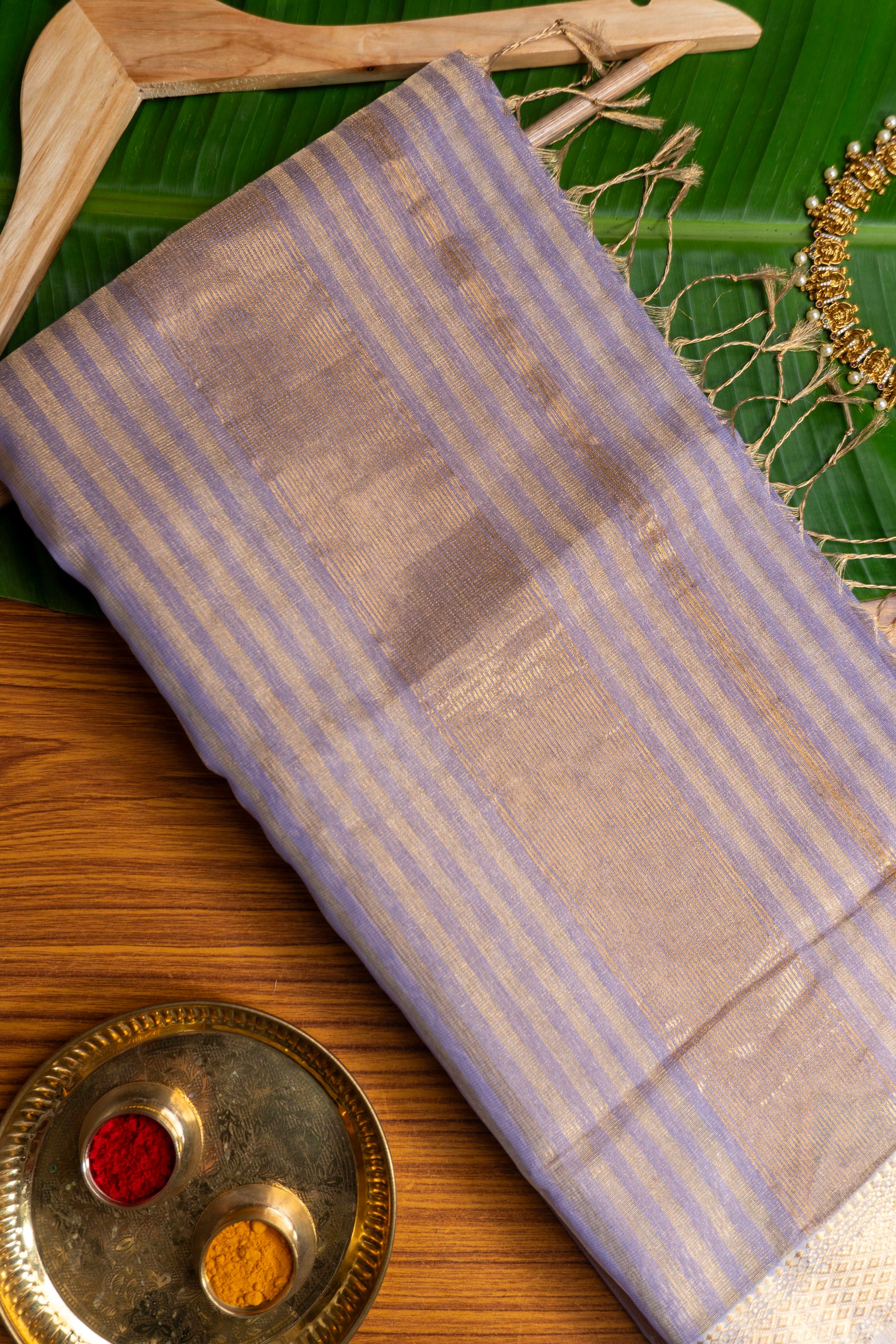 Lavender and Gold Silk Cotton Handloom Zari Striped Maheshwari Saree