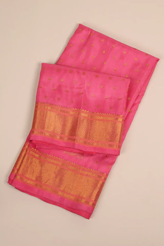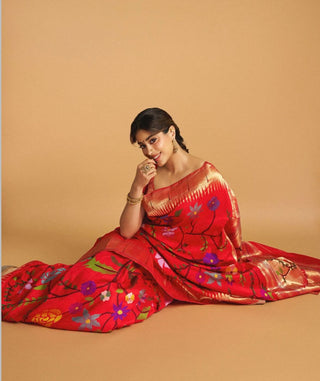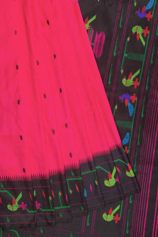 Ruby Pink Pure Silk Paithani Saree with All-Over Floral and Peacock Motifs