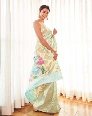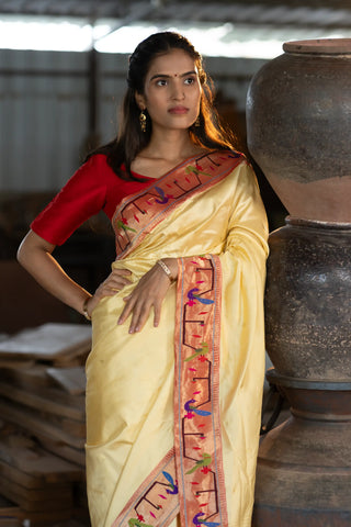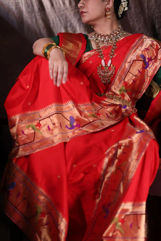 Paithani sarees are known for their luxurious fabric, intricate designs, and vibrant colours, often regarded as the ‘Queen of Silks.’ Characterized by exquisite peacock motifs and stunning zari work, Paithani sarees hold a special place in Indian heritage.