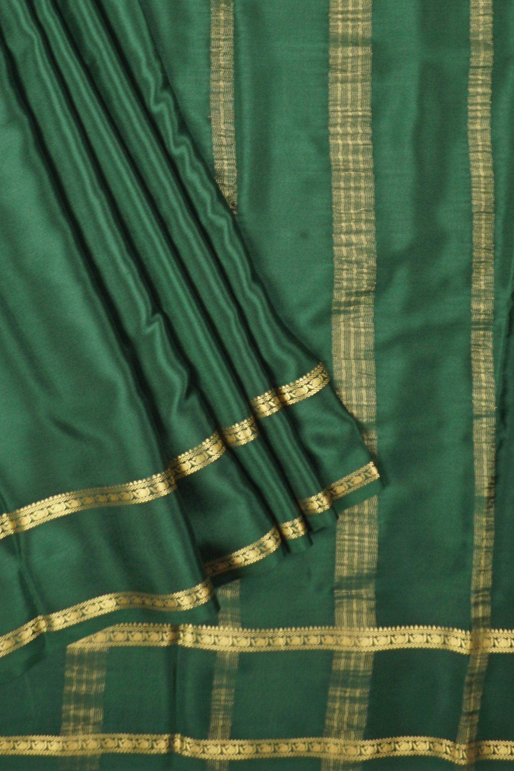 Bottle Green Pure Crepe Silk Saree with Paisley Zari Border