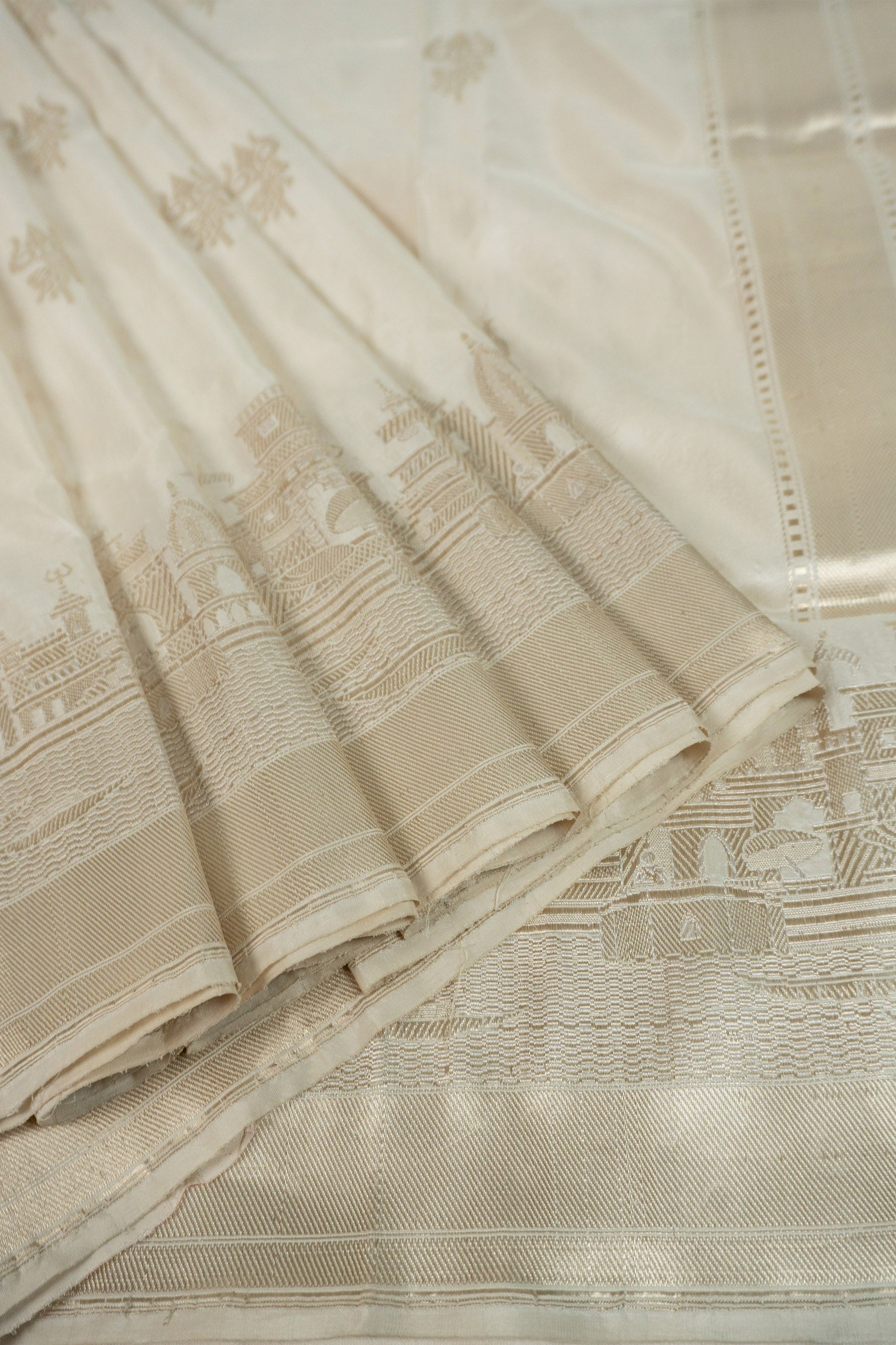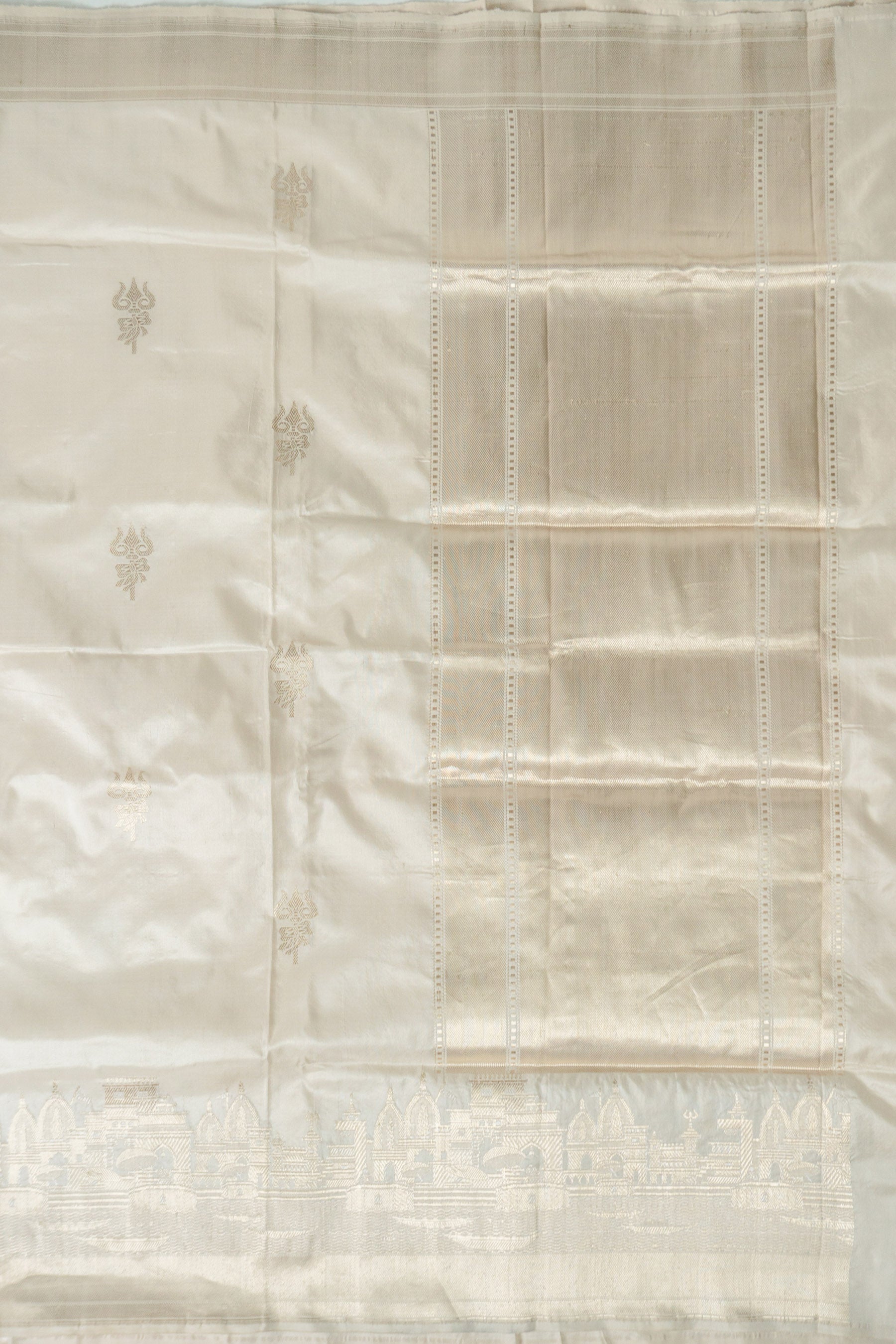 Off-White Banarasi Pure Silk Saree with Trishul-Damru Motifs