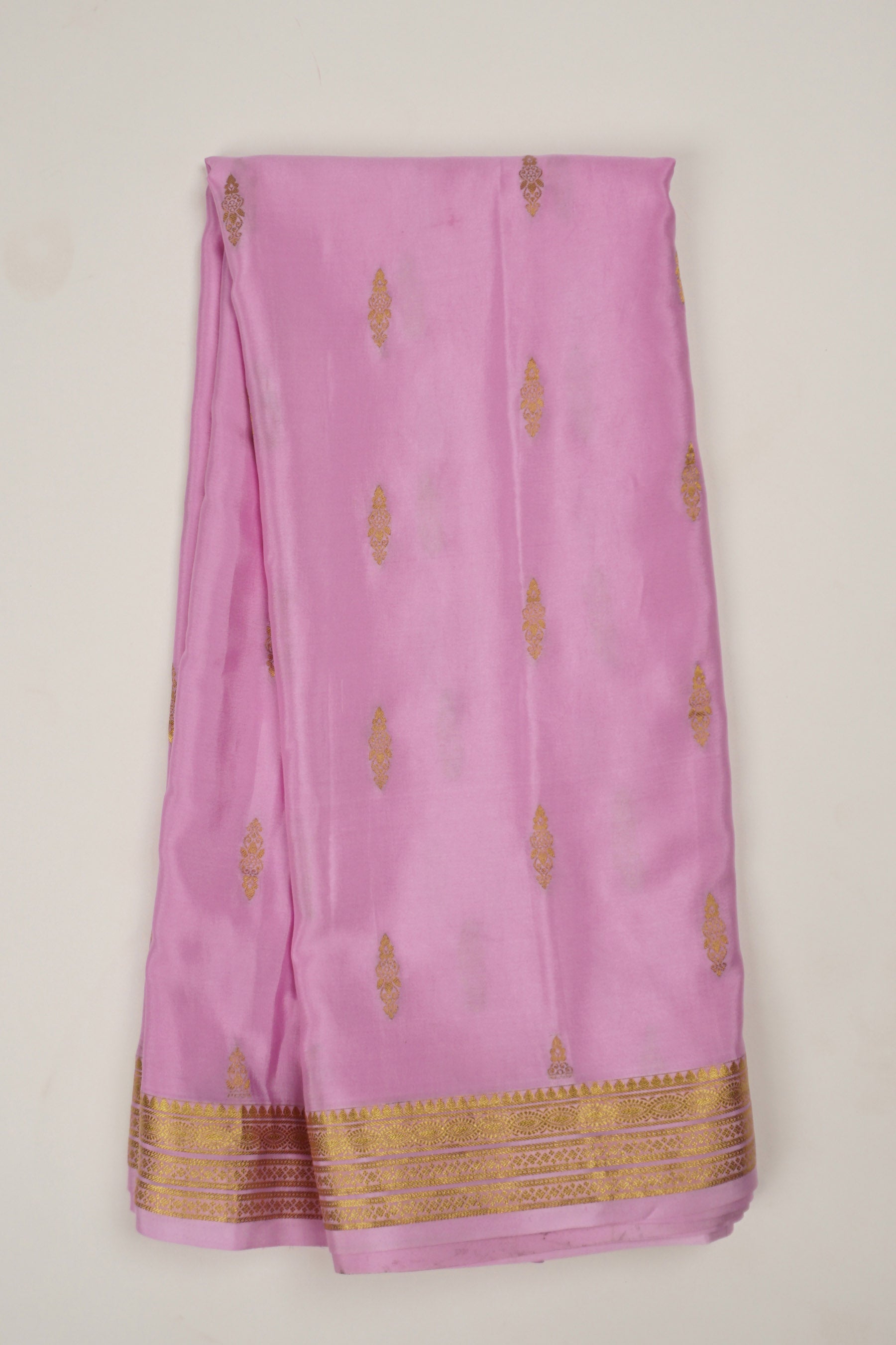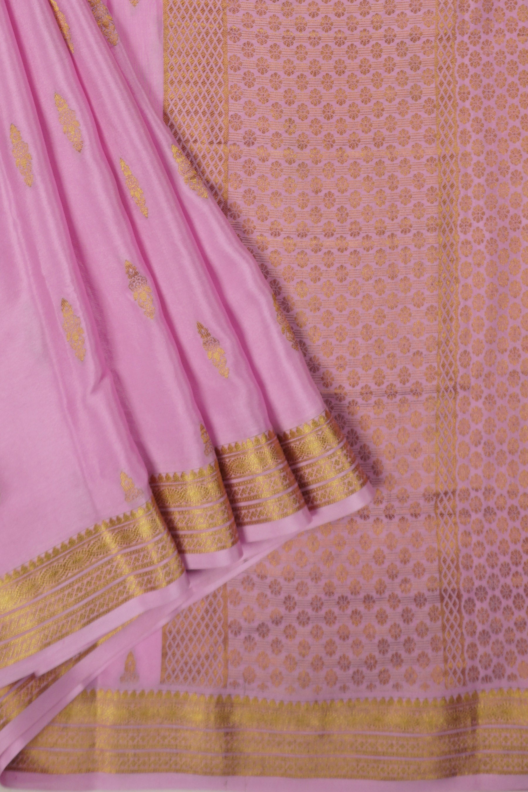 Pastel Pink Pure Crepe Silk Saree with Geometric Buttas and Brocade Pallu
