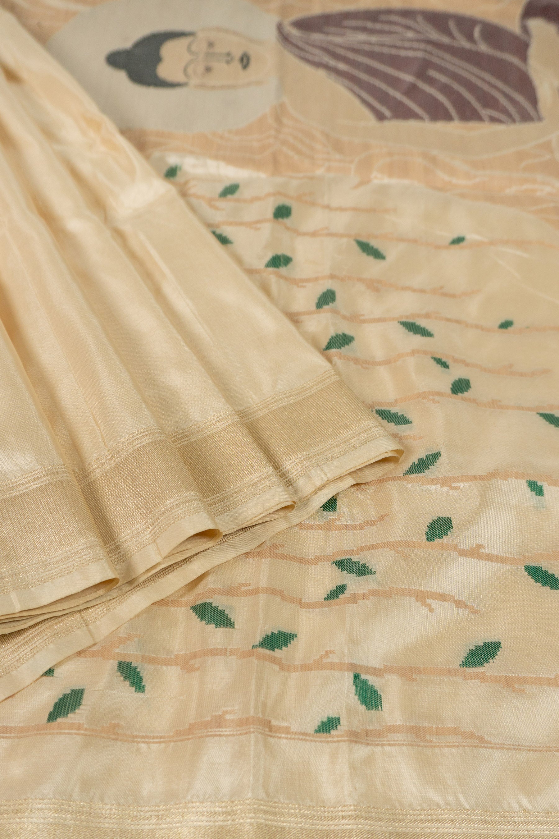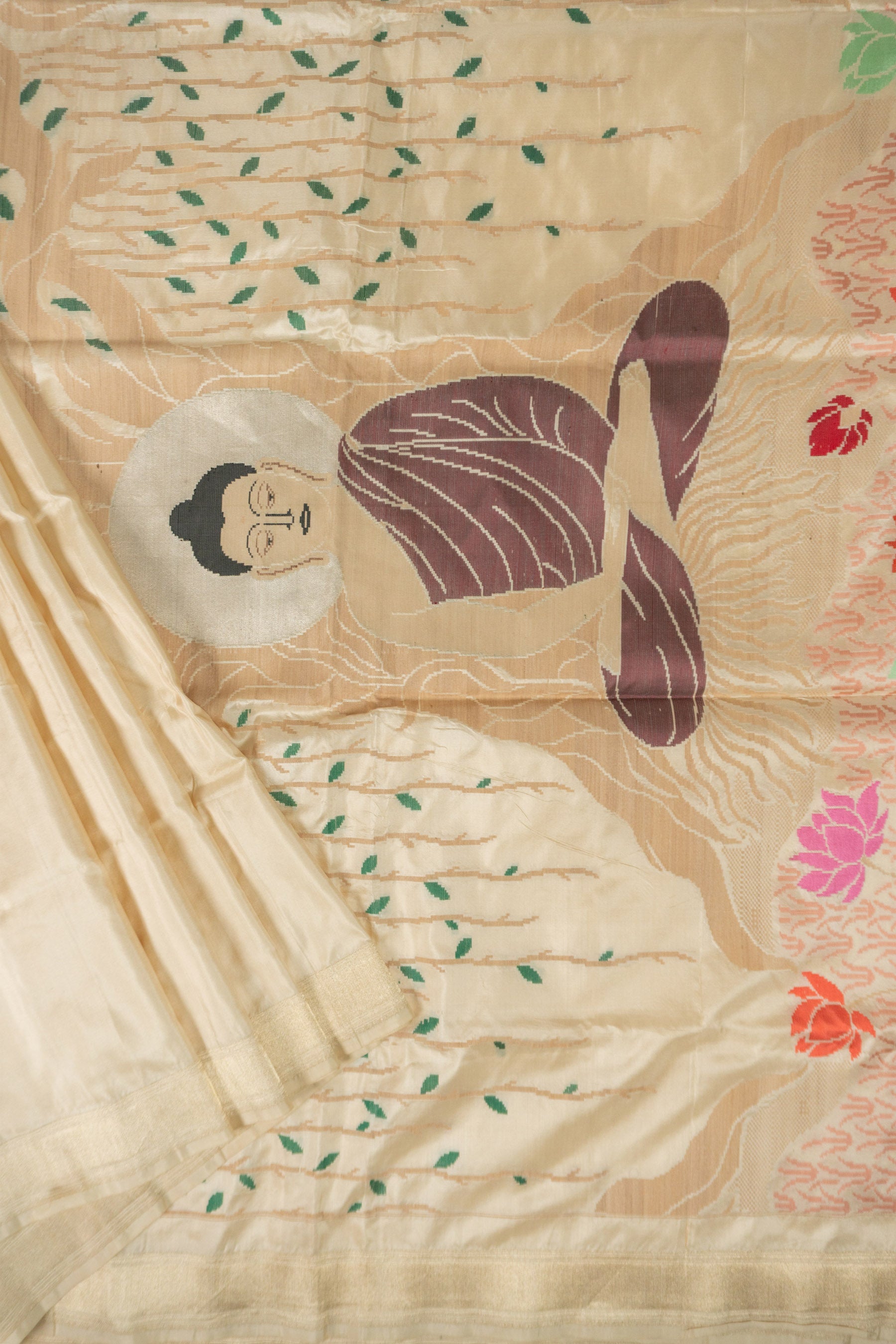 Serene Beige Handloom Banarasi Saree with Buddha Pallu