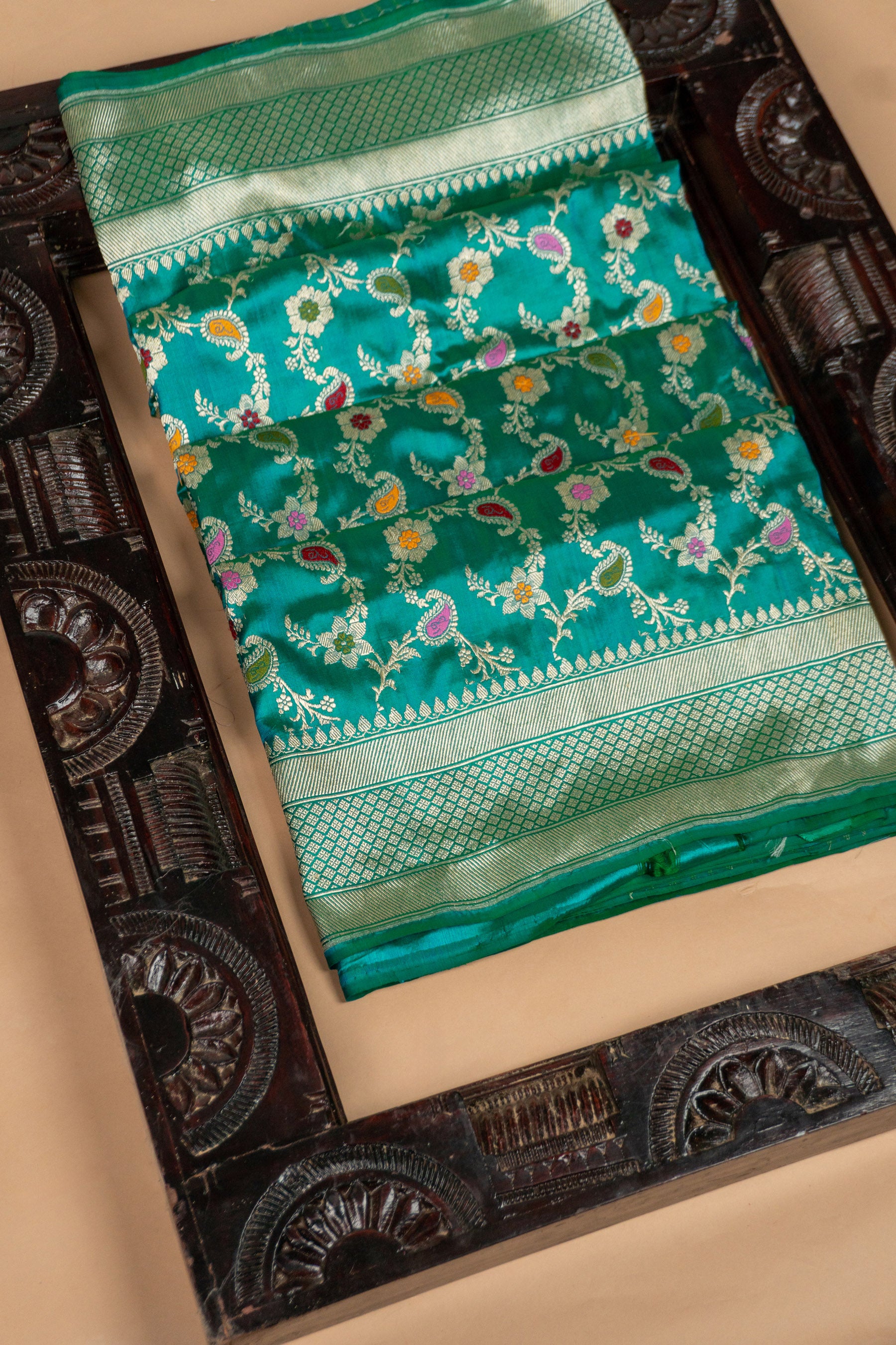 Turquoise Blue Banarasi Saree with Meenakari Jaal