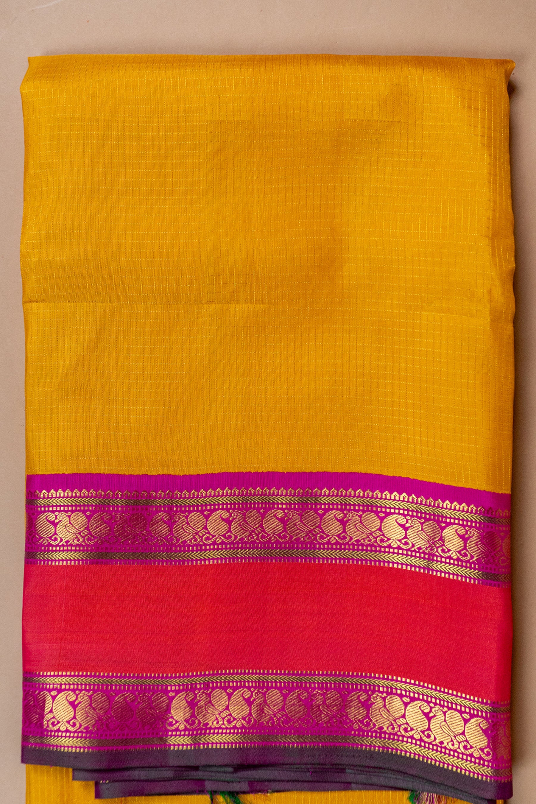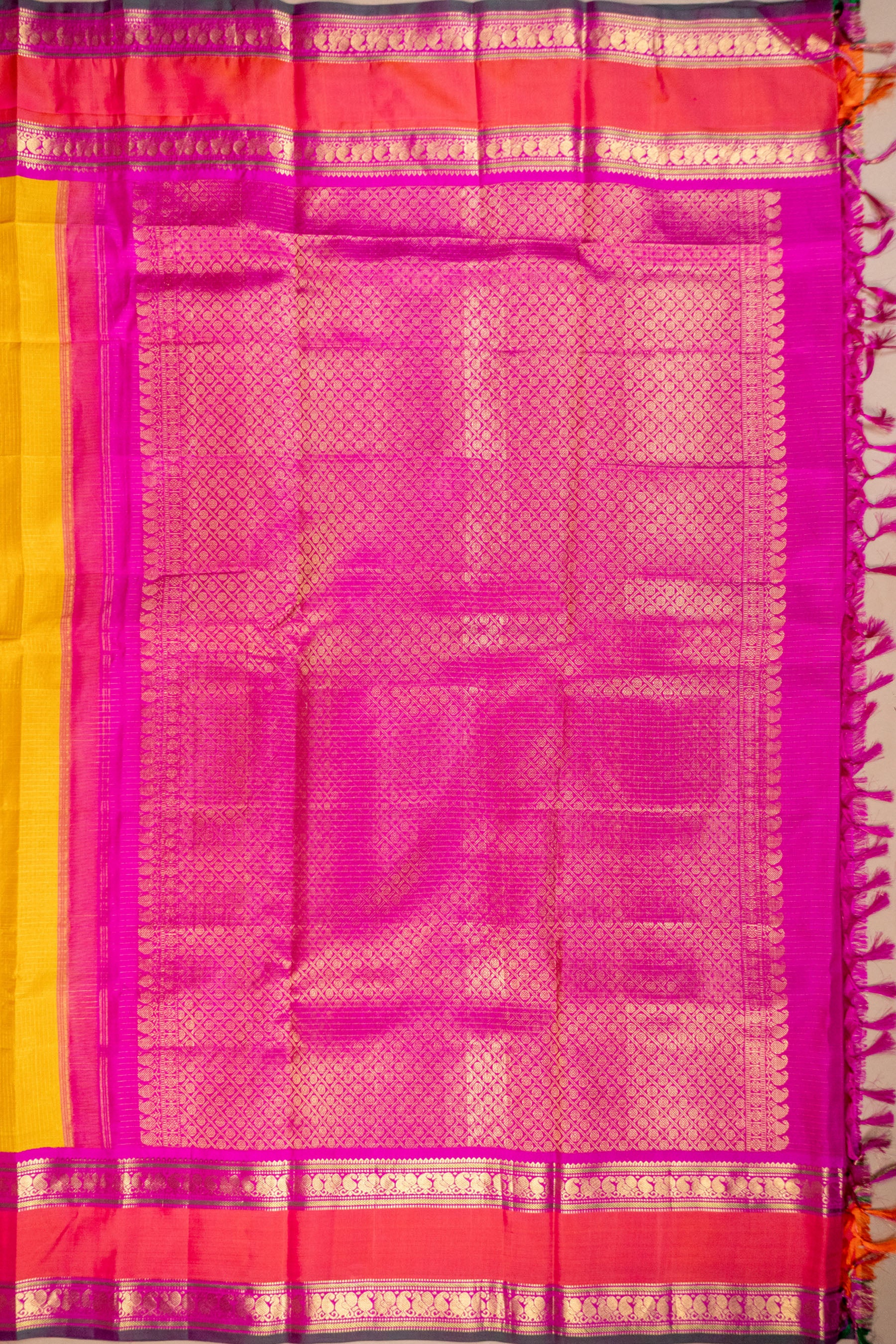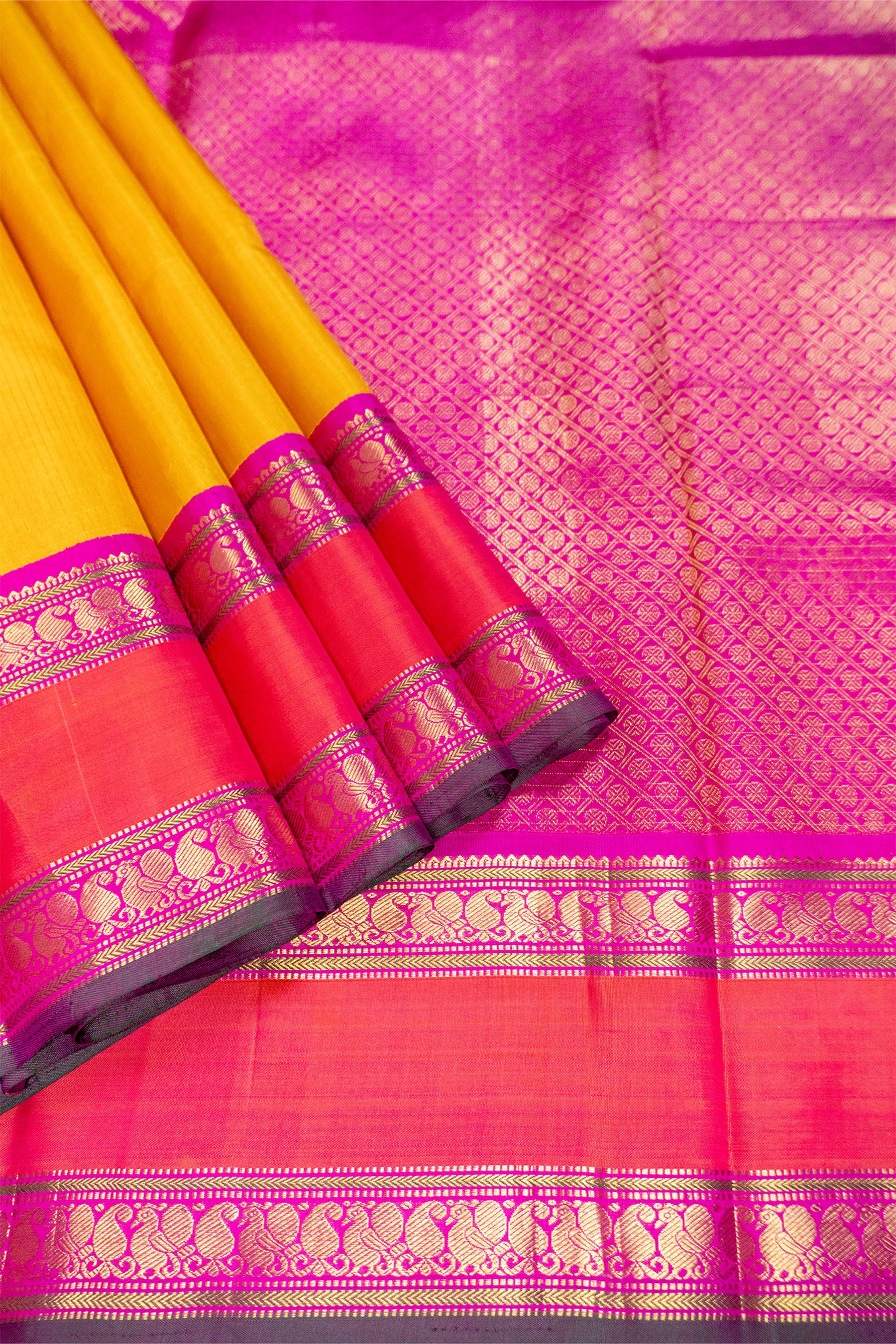 Mustard & Rani Pink Handloom Kanjivaram Silk Saree