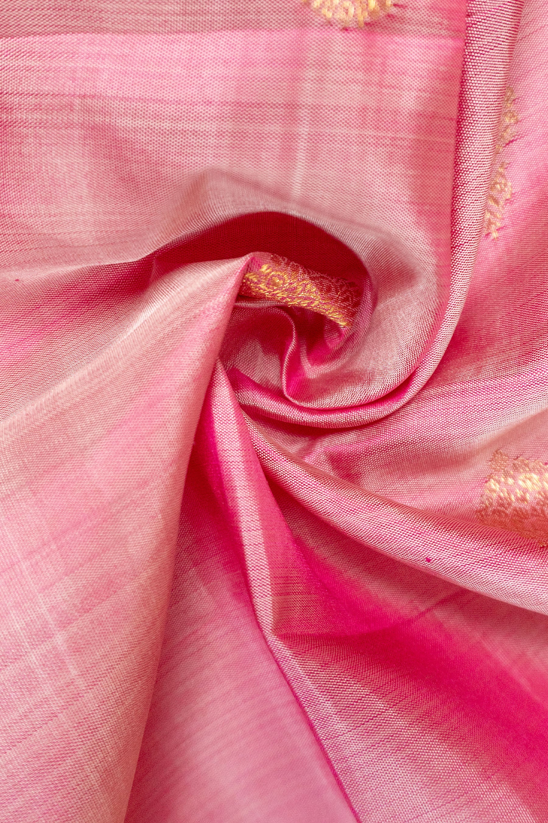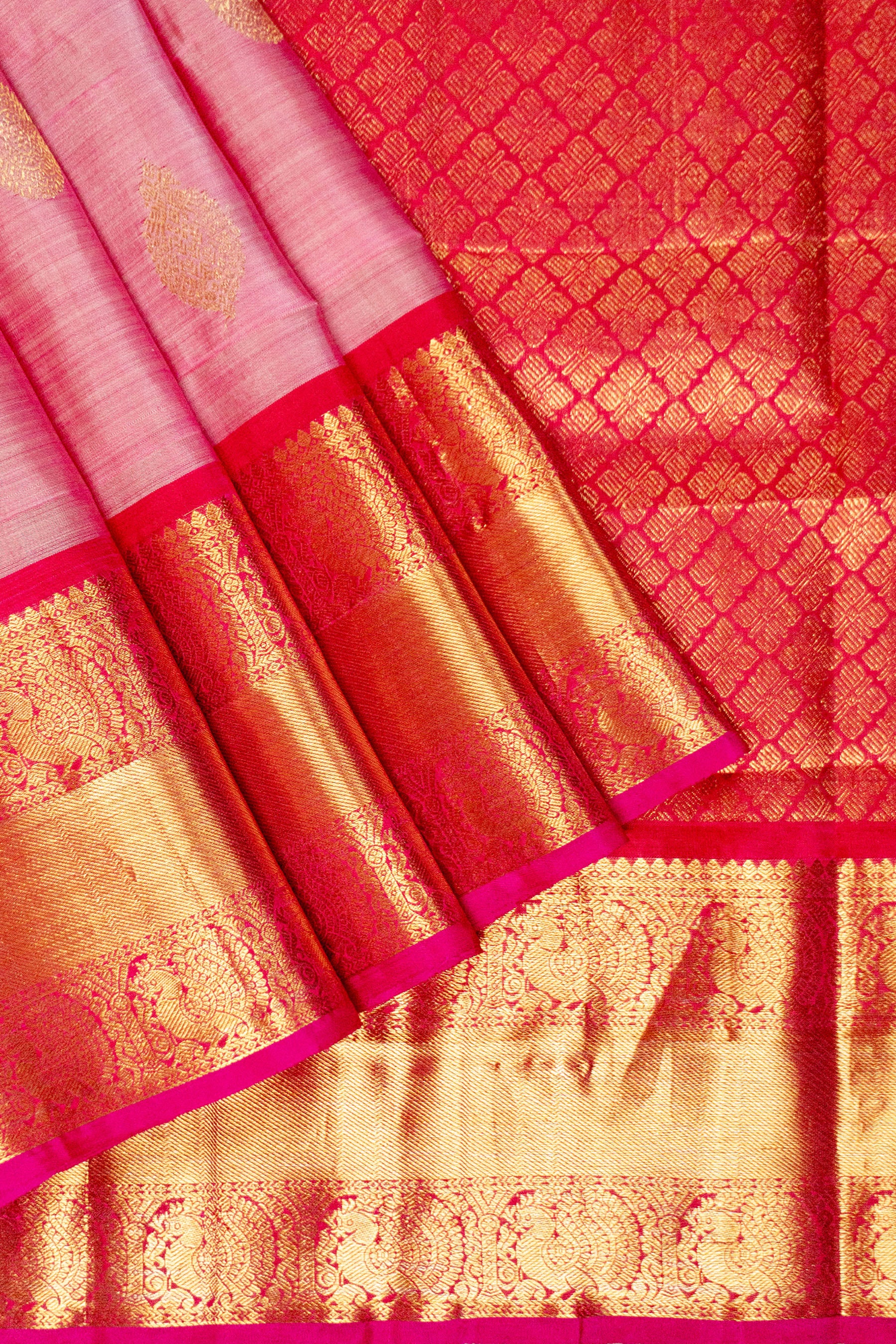 Radiant Dual Tone Pink Kanjivaram Silk Saree with Rich Gold Zari Borders and Intricate Jaal Pallu
